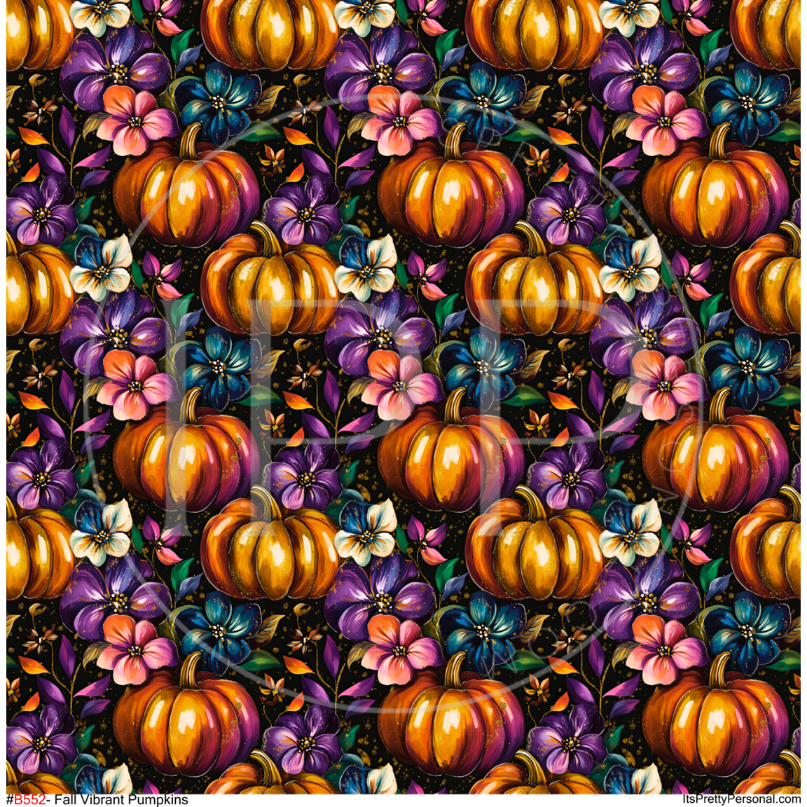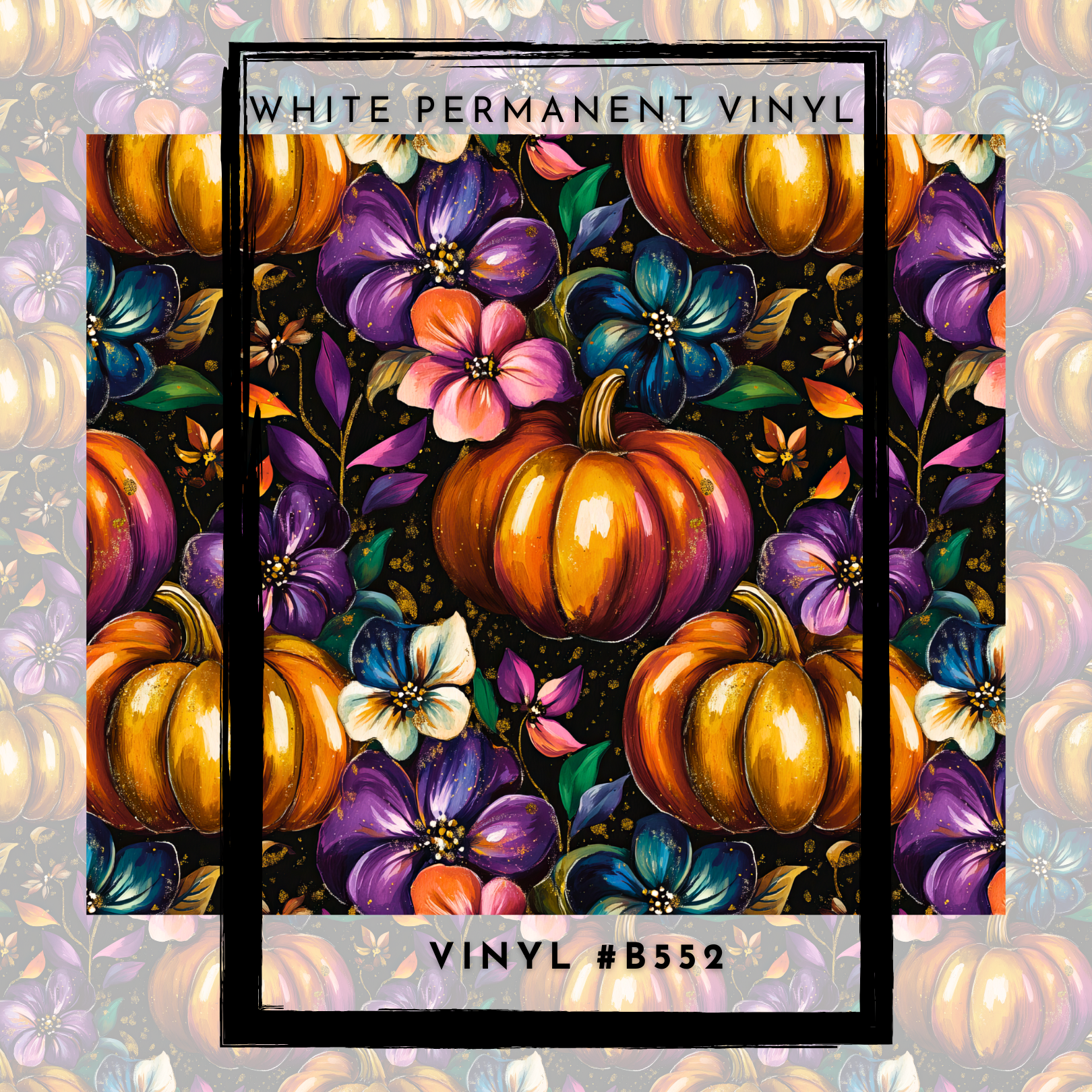#B552- Deep Fall Pumpkin Floral- 12x12 Pattern Vinyl
