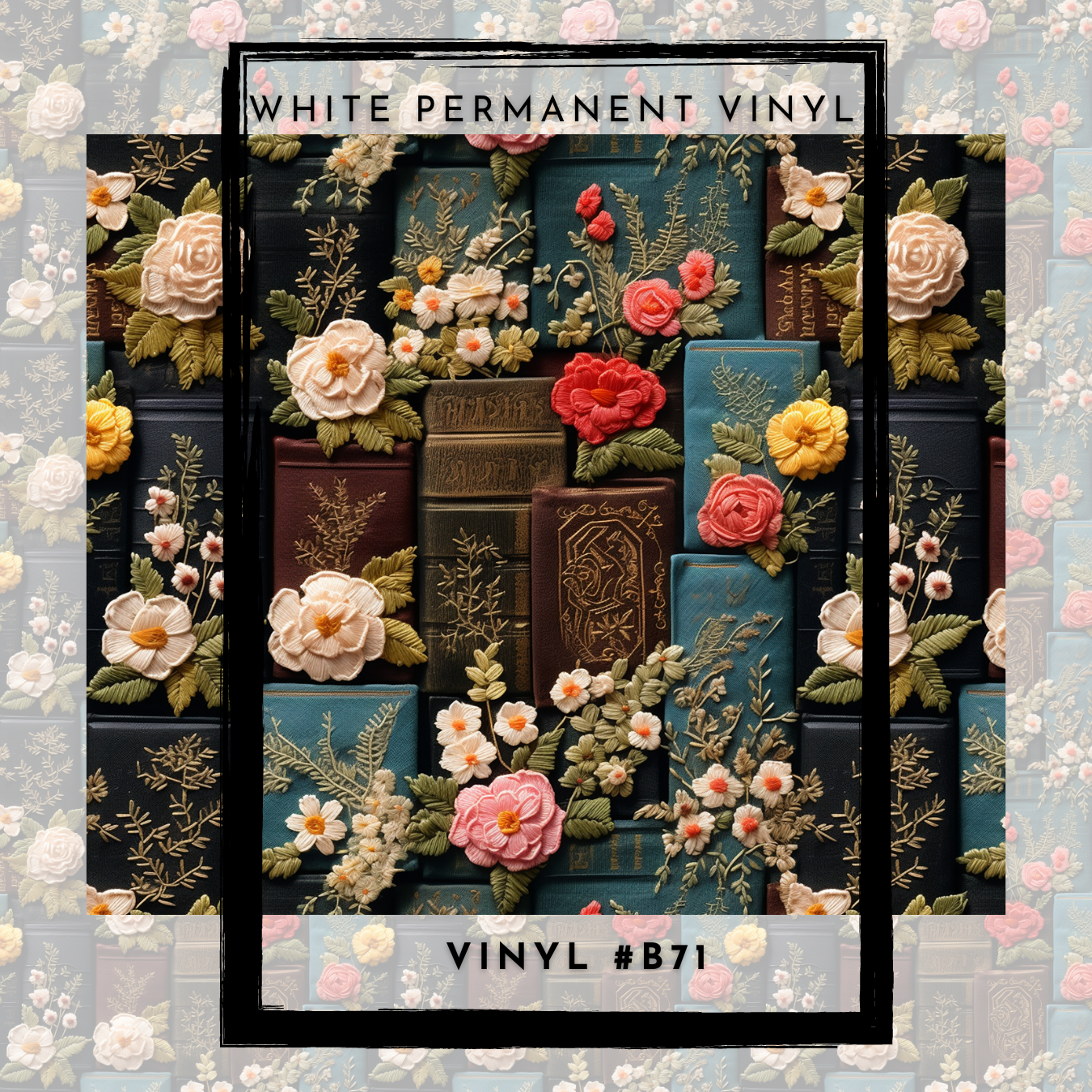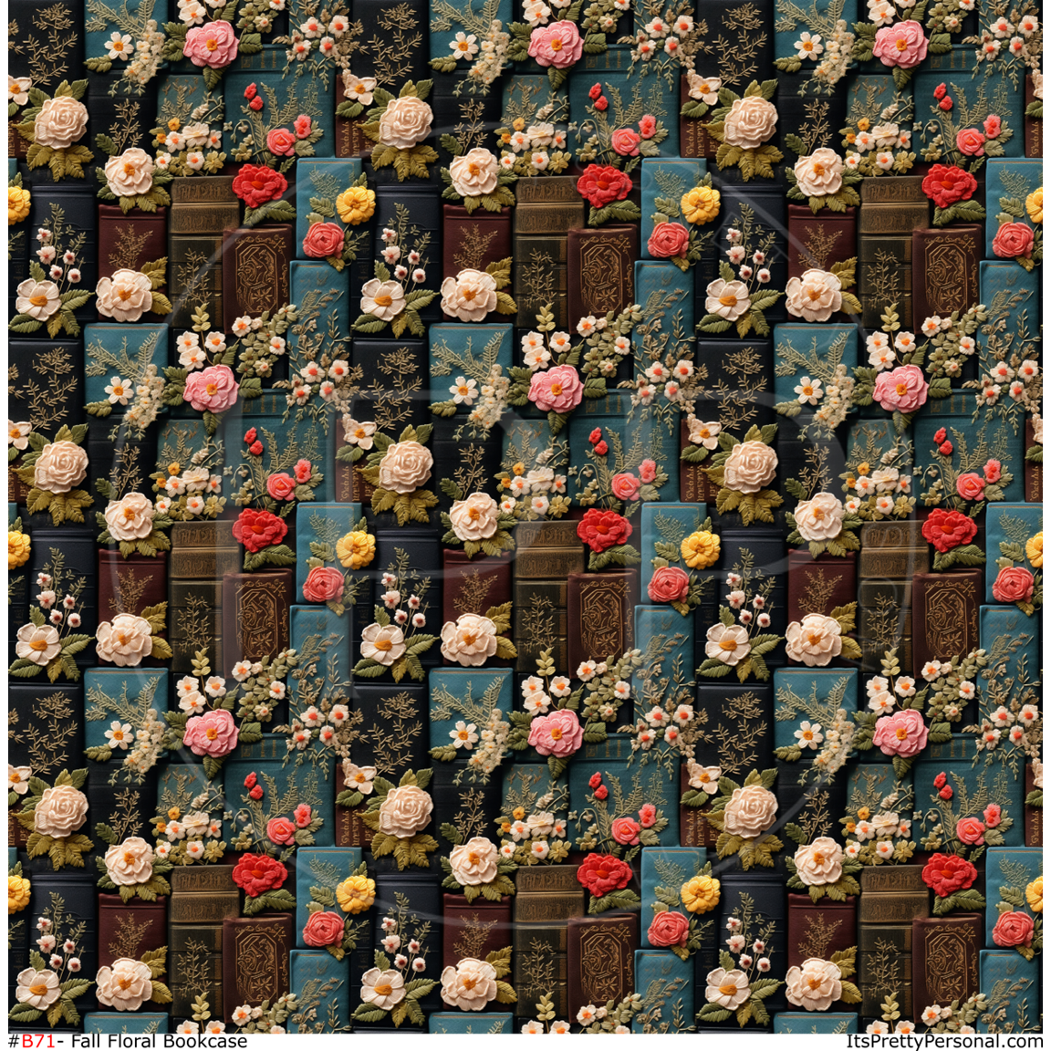 #B71-Fall Floral Bookshelf Yarn Faux Texture - 12x12 Pattern Vinyl