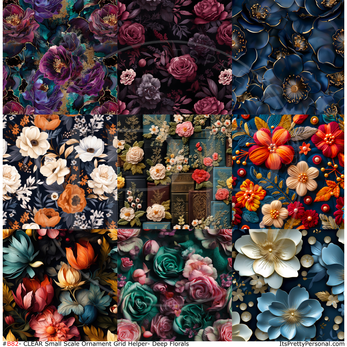 #B82- CLEAR Small Scale Ornament Grid Helper-Deep Floral - 12x12 CLEAR Pattern Vinyl