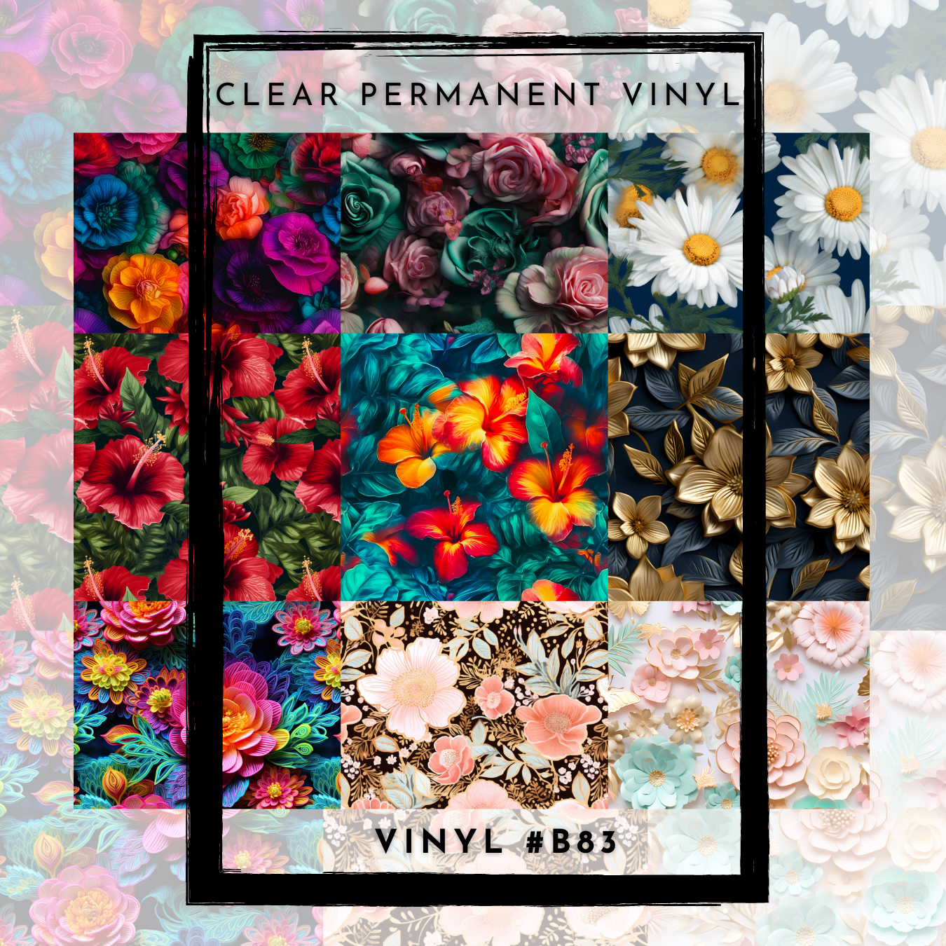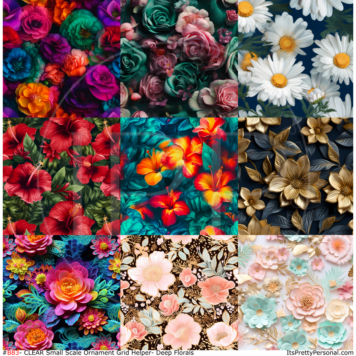 #B83- CLEAR Small Scale Ornament Grid Helper-Deep Floral - 12x12 CLEAR Pattern Vinyl