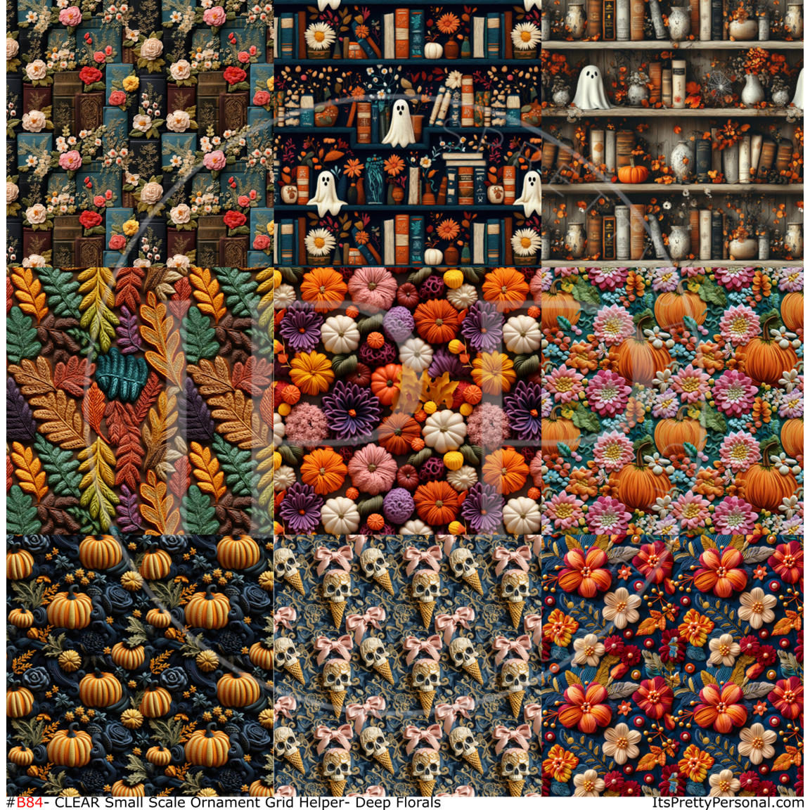 #B84- CLEAR Small Scale Ornament Grid Helper-Deep Floral - 12x12 CLEAR Pattern Vinyl