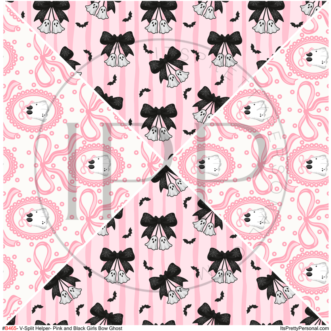 #B465-V-Split Helper-Pink and Black Girly Bow Ghost - 12x12 Pattern Vinyl