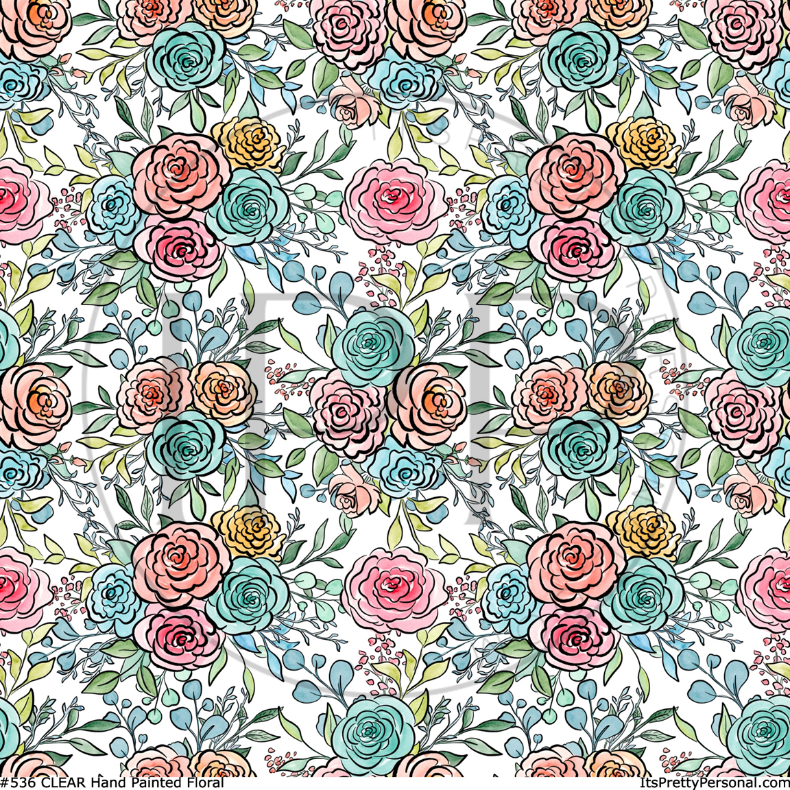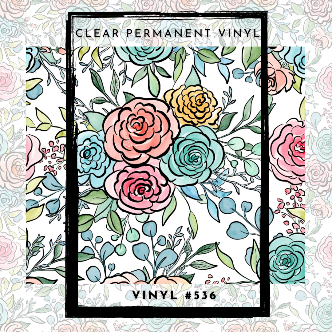 #536 CLEAR Hand Painted Floral 12x12 Pattern Vinyl