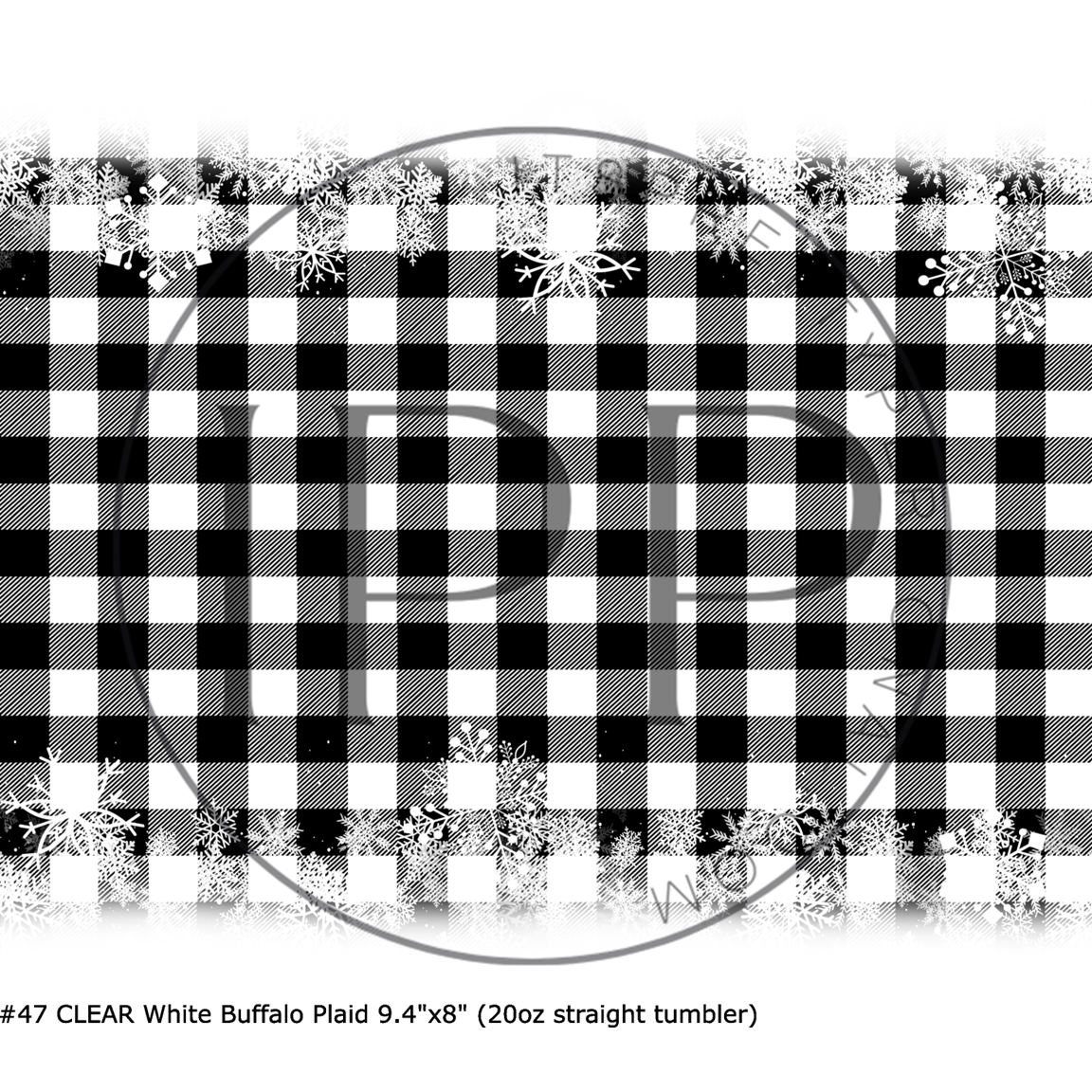#47 CLEAR 20oz- White Buffalo Plaid Snow- 9.4" x 8" Pattern Vinyl Wrap (IPP EXCLUSIVE!)
