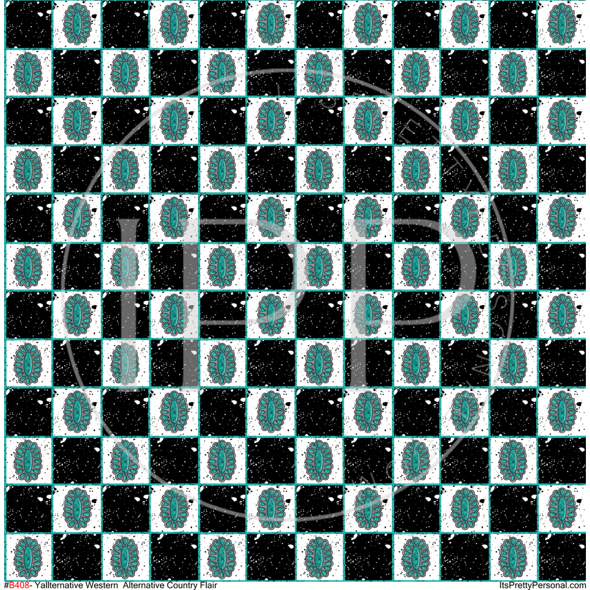 #B408- Turquoise Checkered- Y'allternative Western Alternative Country Flair IPP EXCLUSIVE! - 12x12 Pattern Vinyl