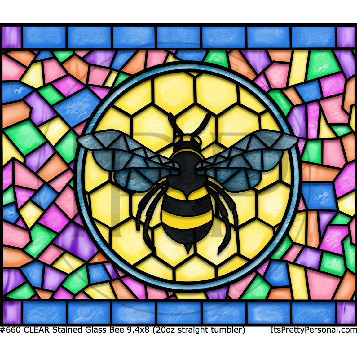 #660 CLEAR- 20oz -Stained Glass Bee 9.4" x 8" Pattern Vinyl Wrap