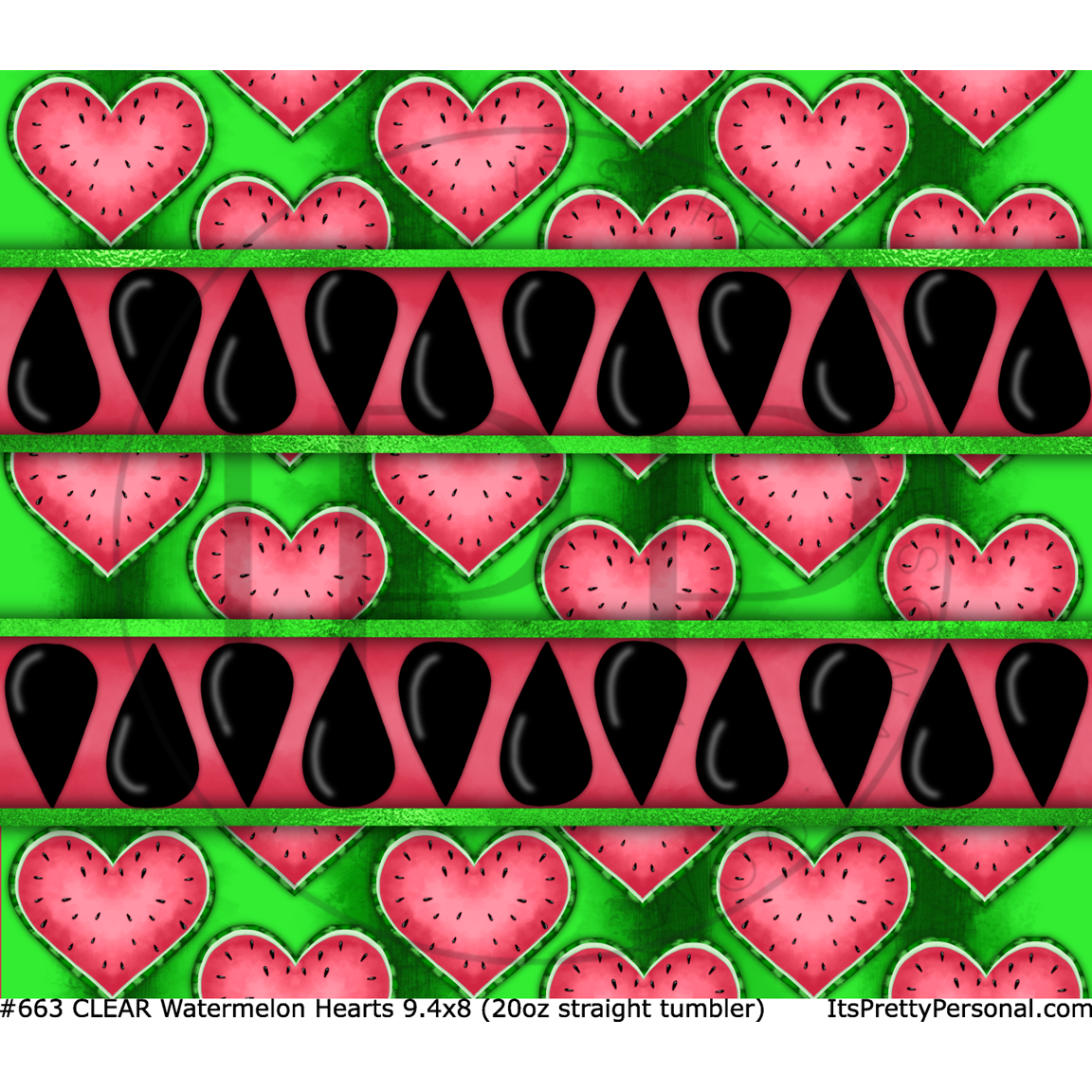 #663 CLEAR- 20oz -Watermelon Hearts 9.4" x 8" Pattern Vinyl Wrap