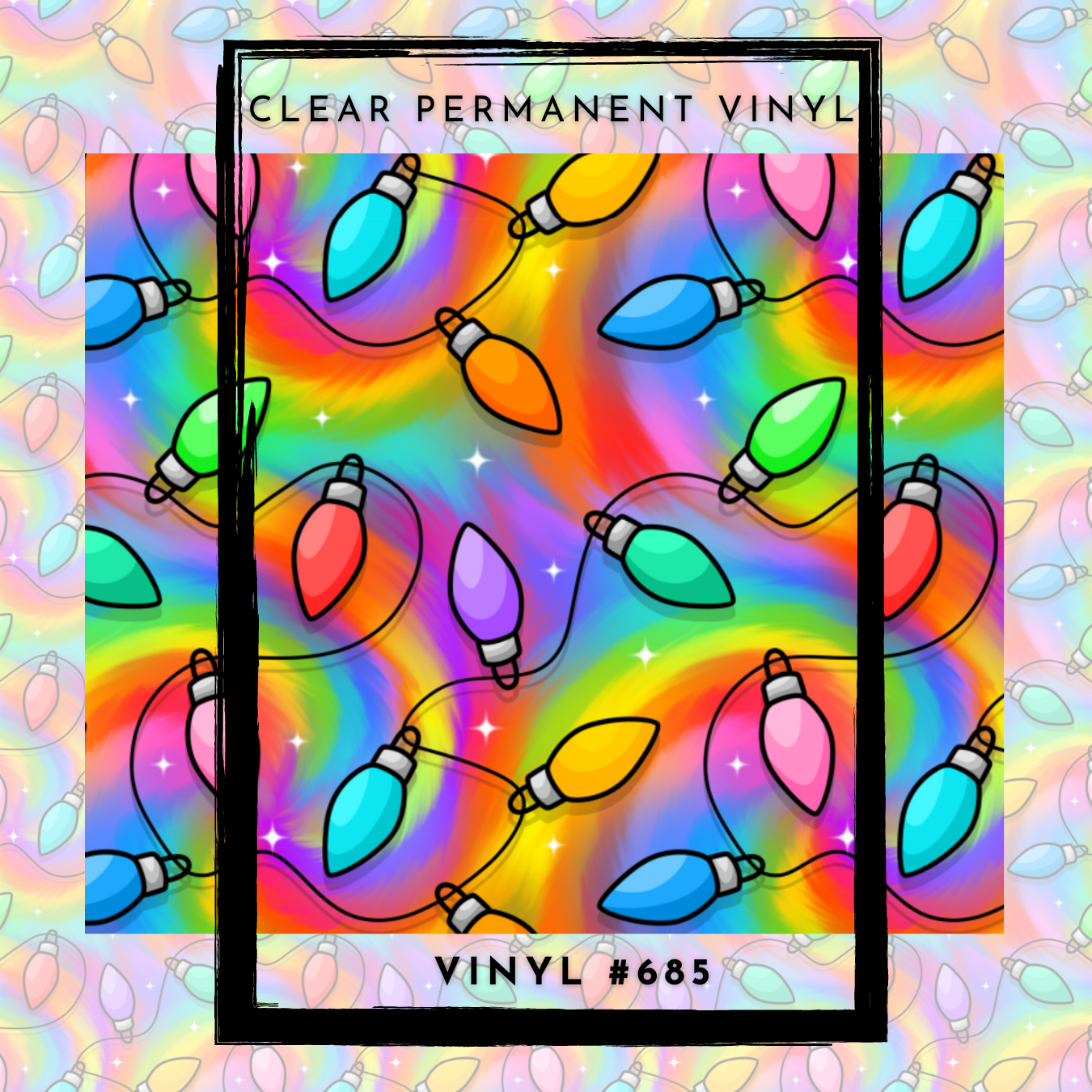 #685 CLEAR-Rainbow Christmas Lights- 12x12 Pattern Vinyl