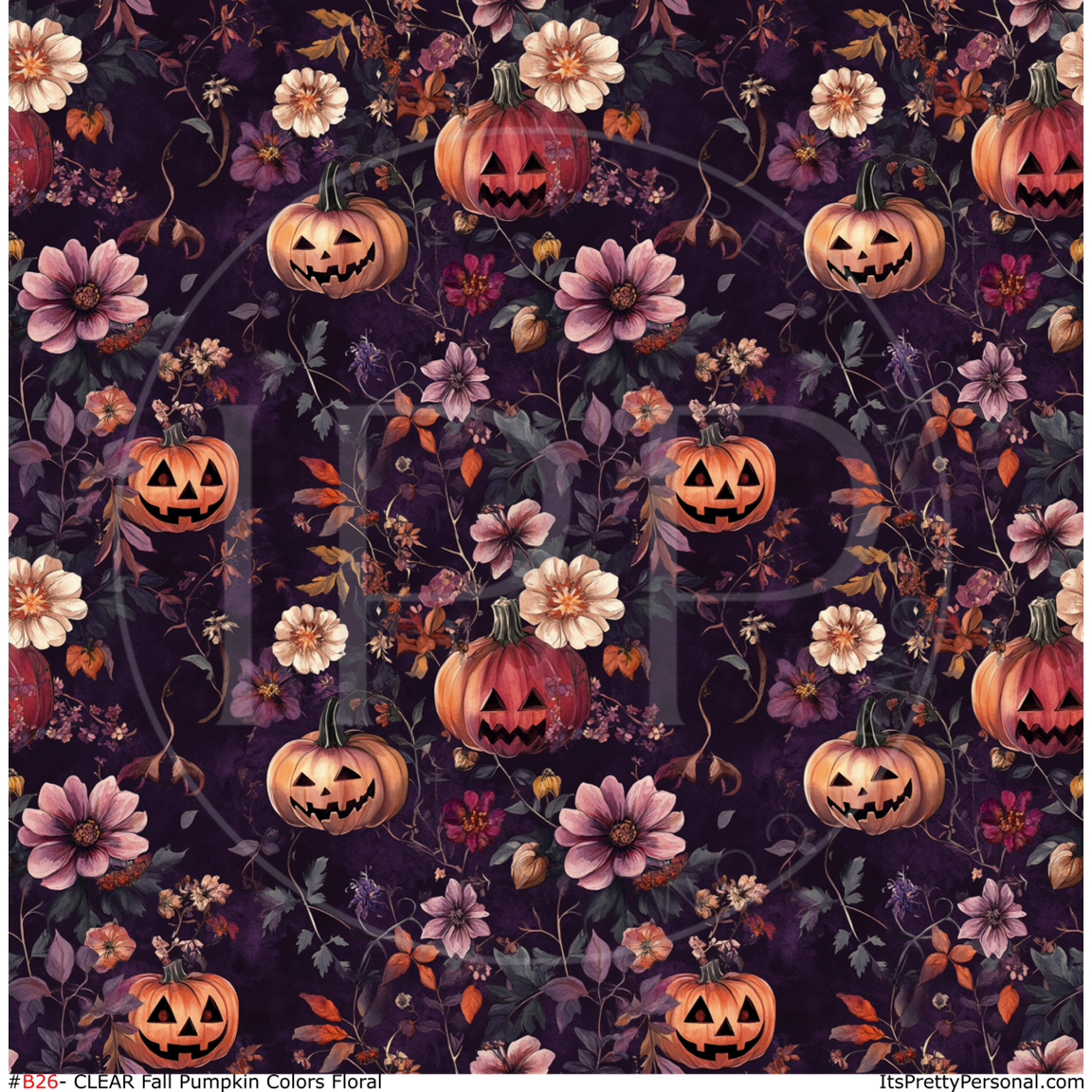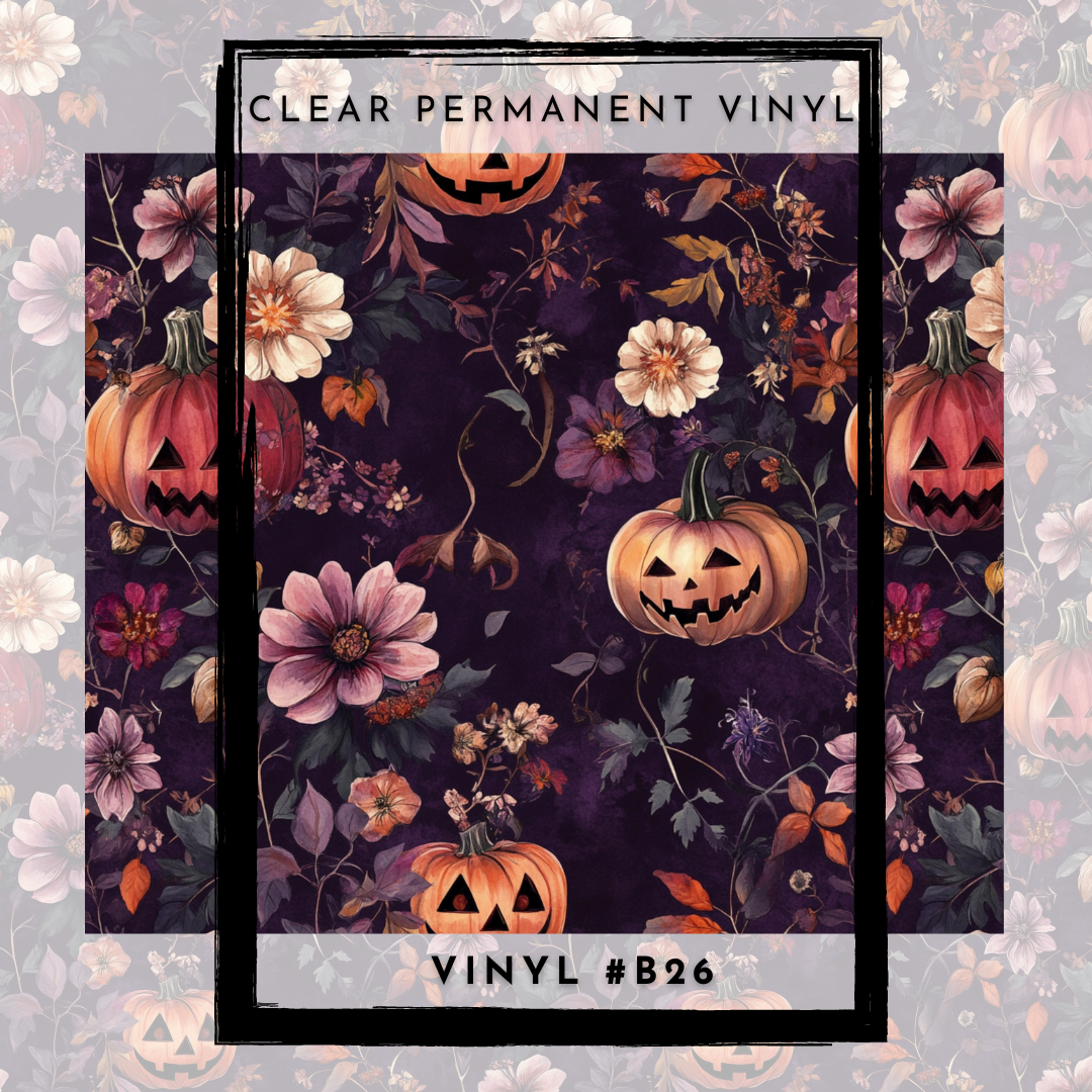 #B26- CLEAR Deep Purple Orange Spooky Pumpkins - 12x12 Pattern Vinyl