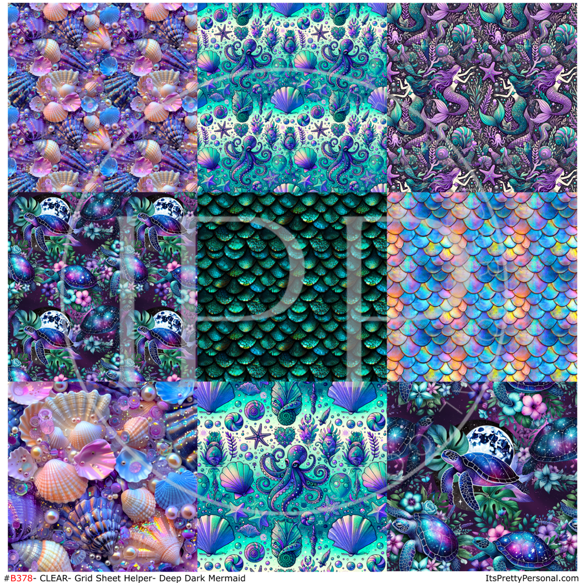 #B378- CLEAR Small Scale Ornament Grid Helper-Deep Mermaid Ocean-12x12 CLEAR Pattern Vinyl