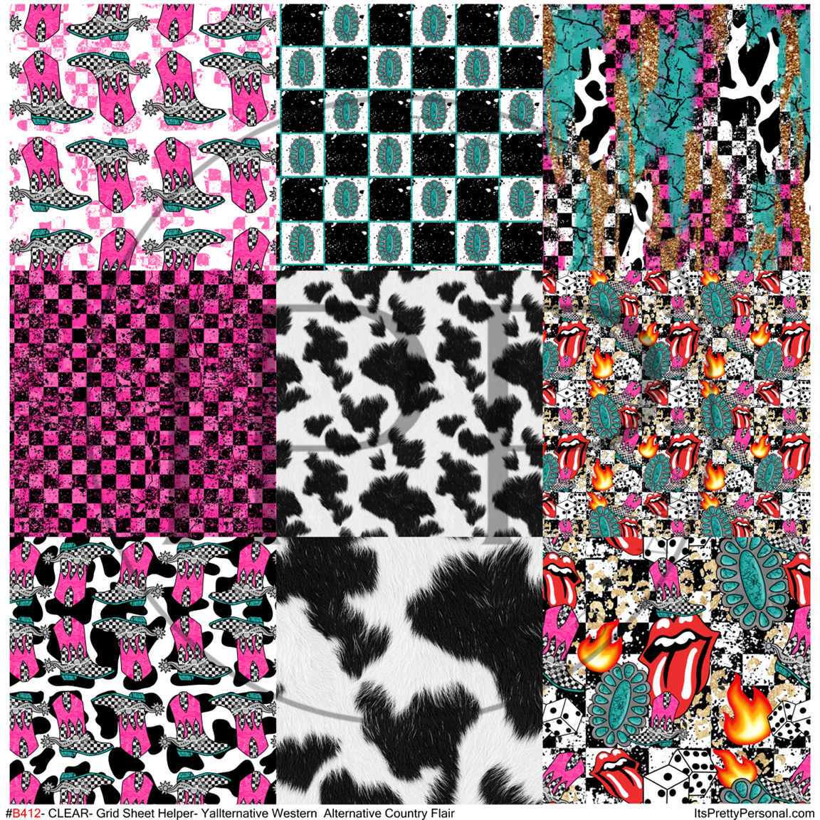 #B412-CLEAR Small Scale Ornament Grid Helper-Y'allternative Western Alternative Country Flair- 12x12 CLEAR Pattern Vinyl
