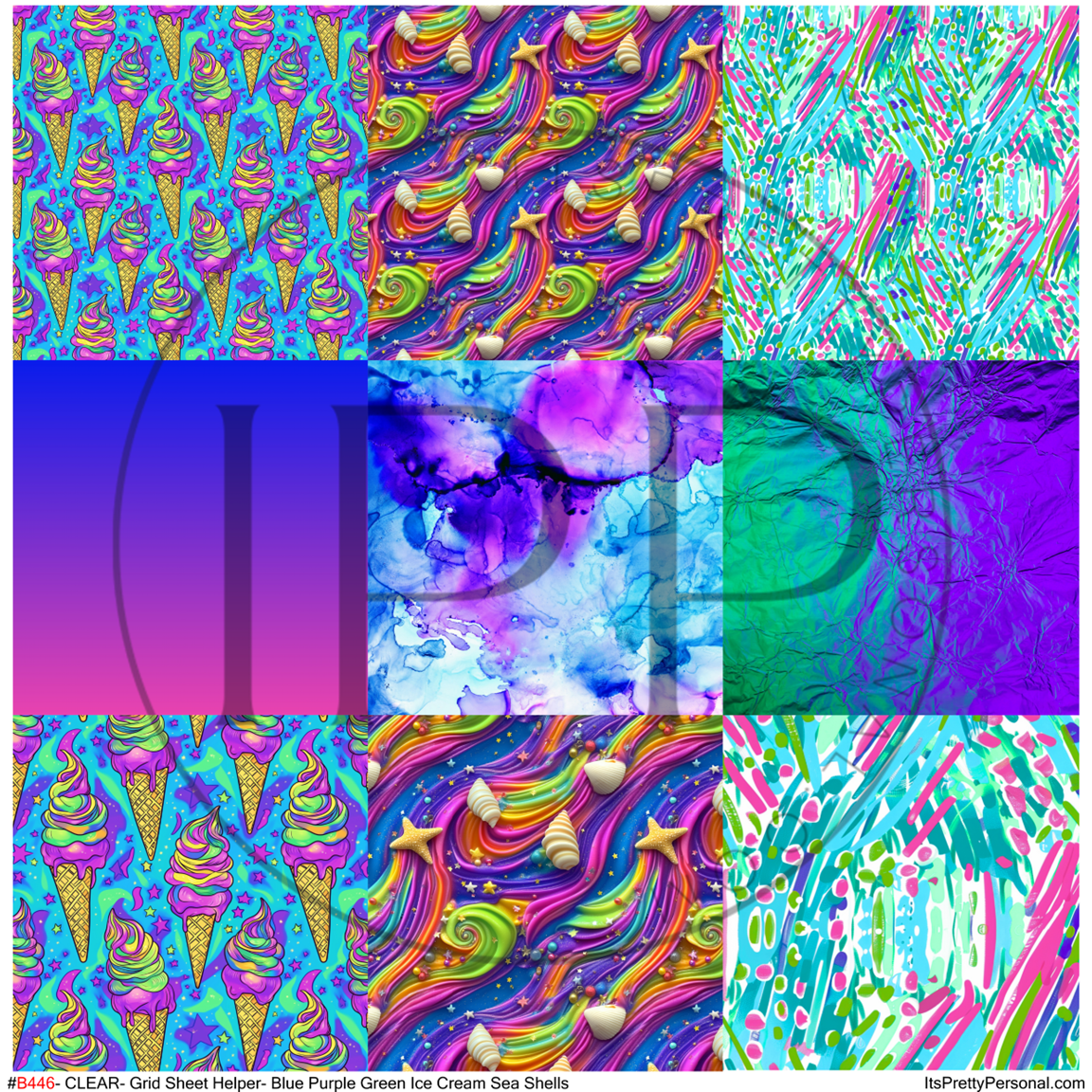 #B446-CLEAR Small Scale Ornament Grid Helper-Blue Purple Green Ice Cream Sea Shells - 12x12 CLEAR Pattern Vinyl