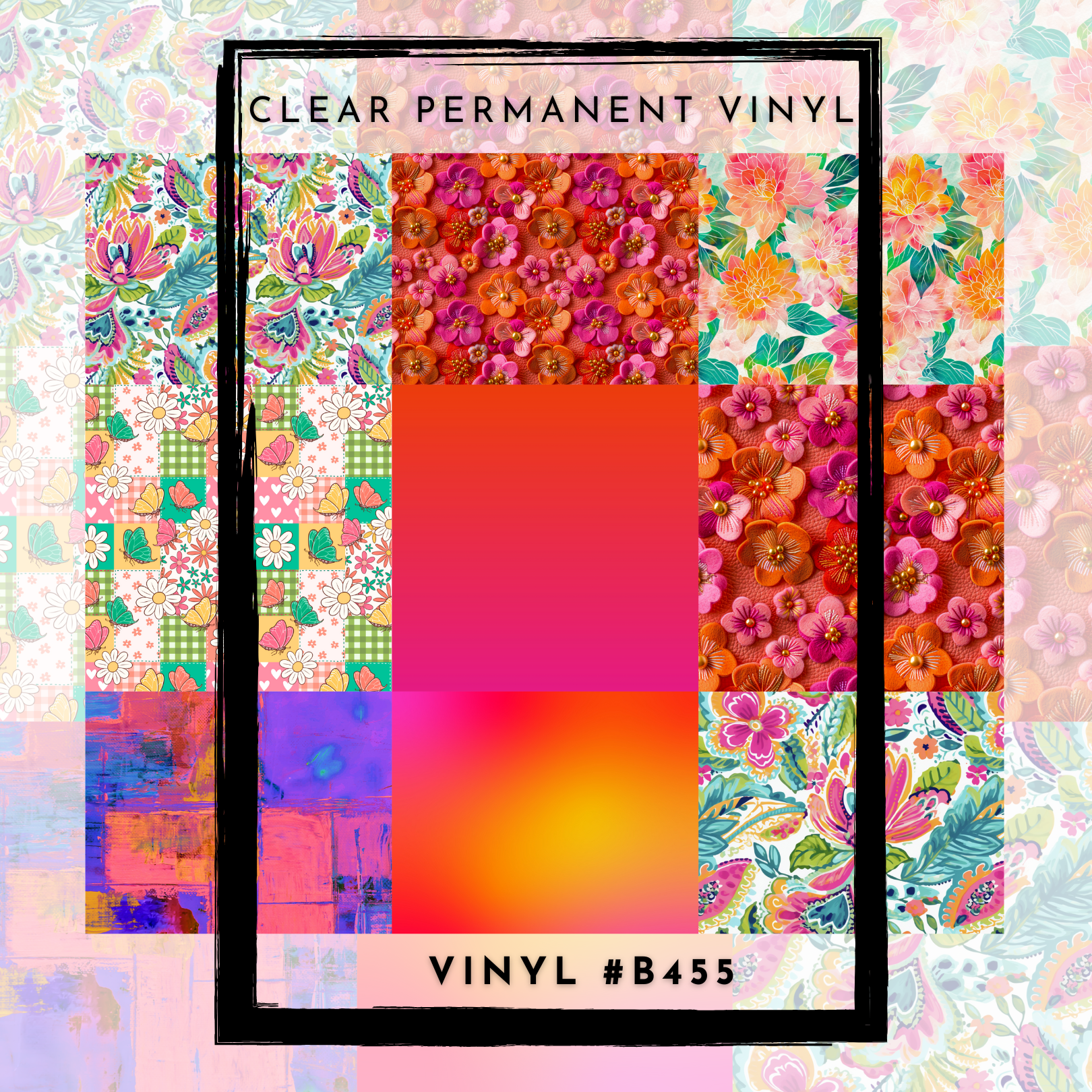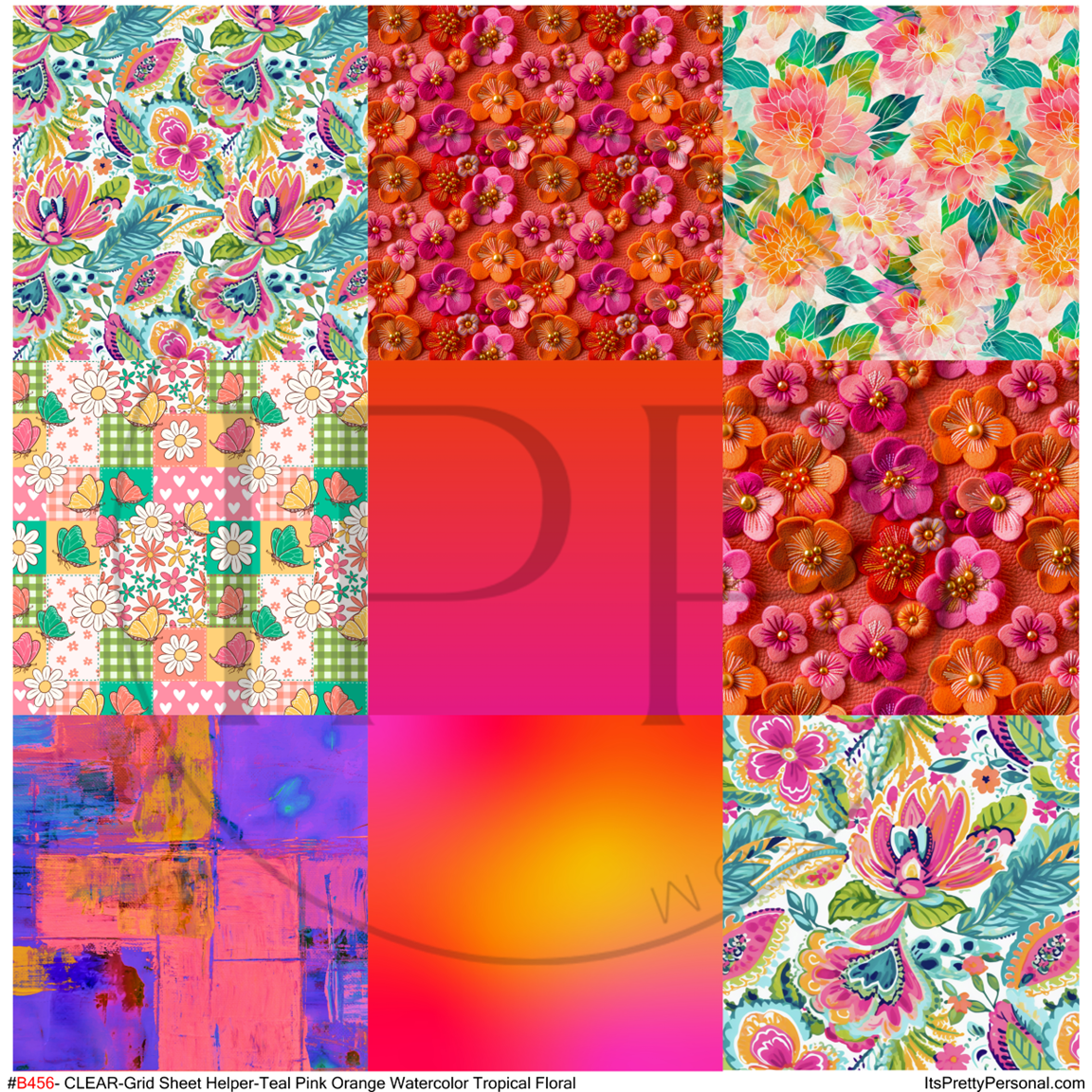 #B456-CLEAR Small Scale Ornament Grid Helper-Pink Orange Teal Floral - 12x12 CLEAR Pattern Vinyl