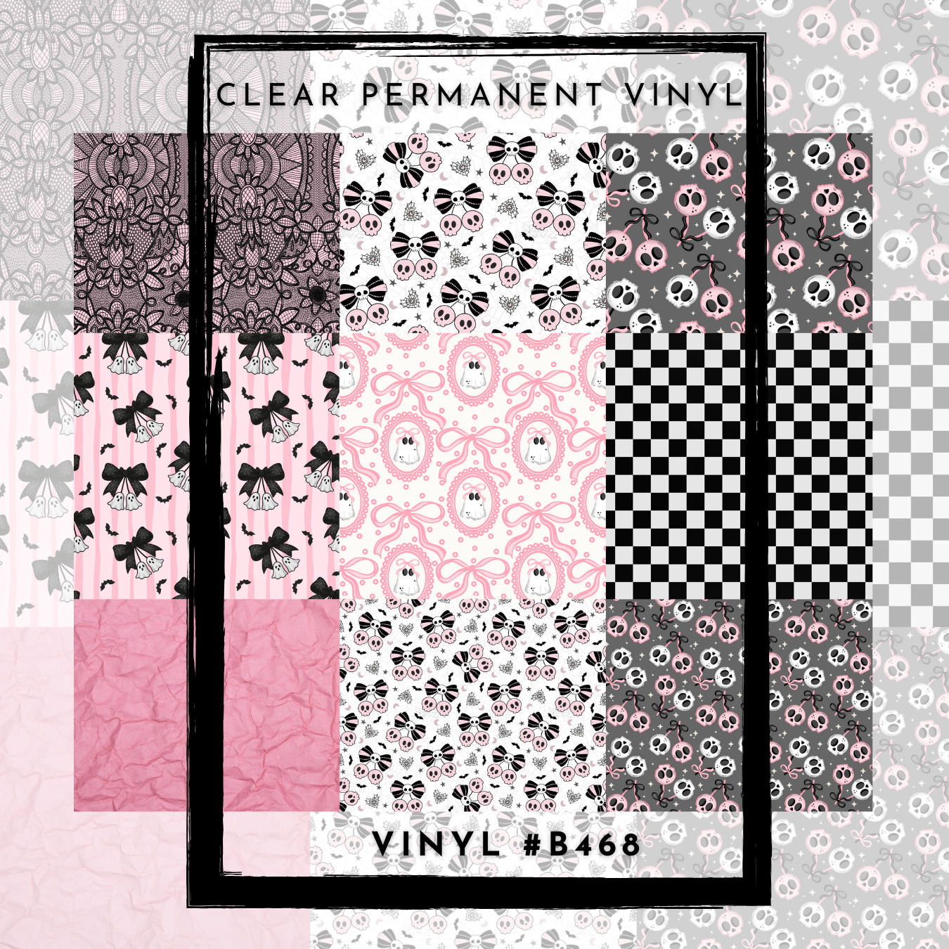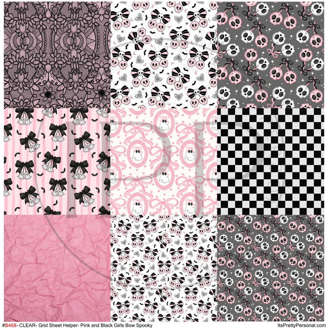 #B468-CLEAR Small Scale Ornament Grid Helper-Pink and Black Girly Bow Spooky- 12x12 CLEAR Pattern Vinyl