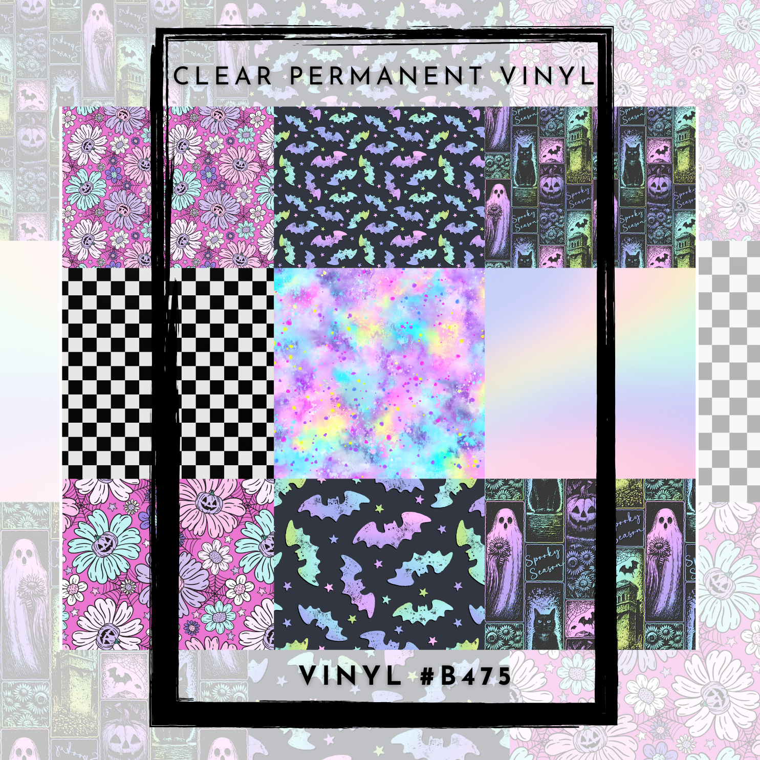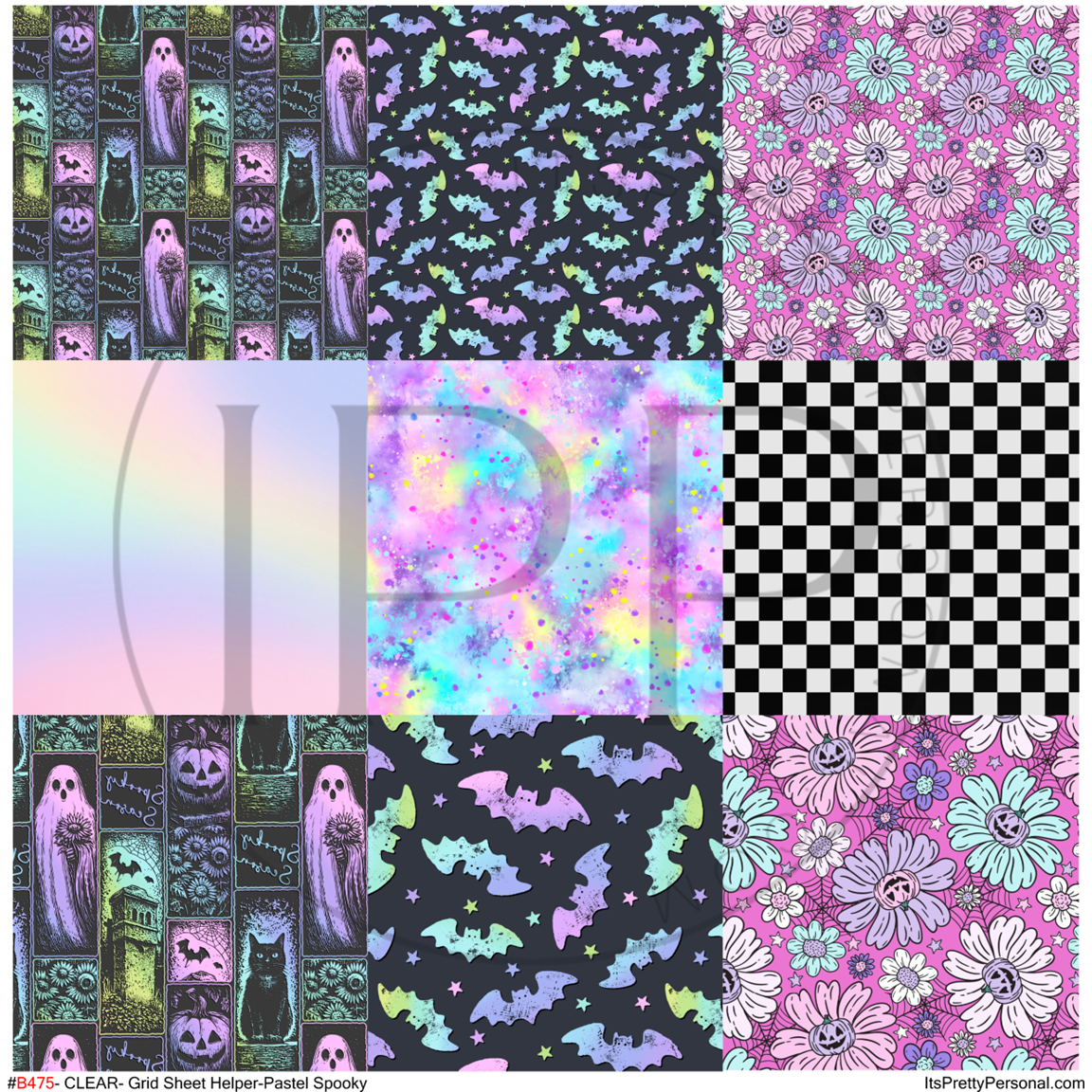 #B475-CLEAR Small Scale Ornament Grid Helper-Pastel Spooky- 12x12 CLEAR Pattern Vinyl