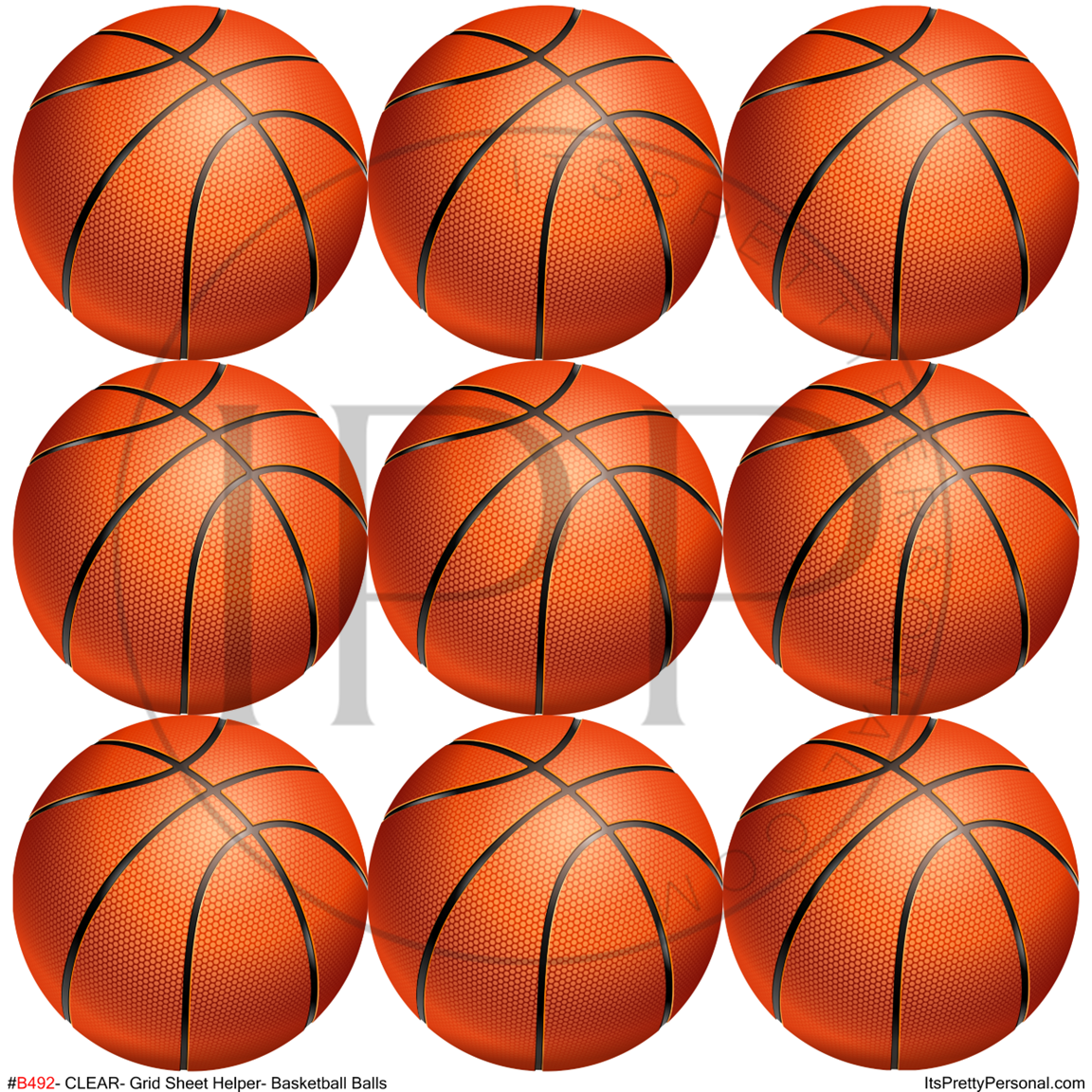 #B492-CLEAR Small Scale Ornament Grid Helper-Sports Basketball Balls- 12x12 CLEAR Pattern Vinyl