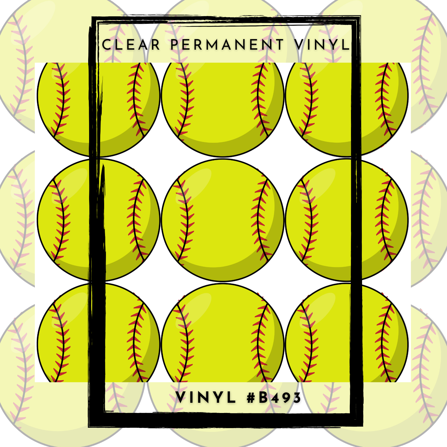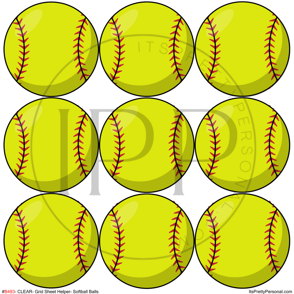 #B493-CLEAR Small Scale Ornament Grid Helper-Sports Softball Balls- 12x12 CLEAR Pattern Vinyl