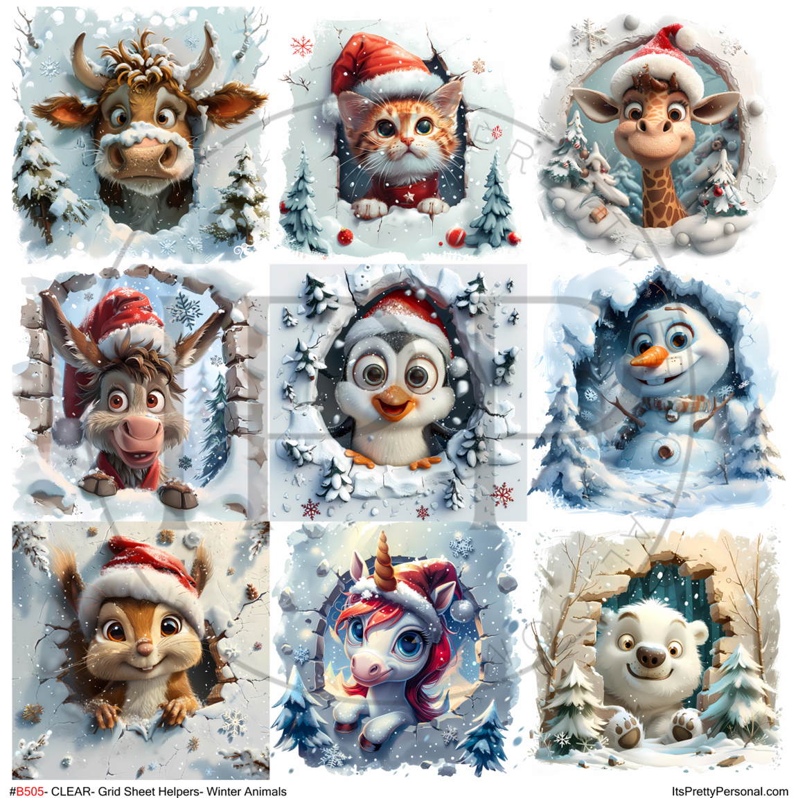 #B505-CLEAR Small Scale Ornament Grid Helper-Winter Animals- 12x12 CLEAR Pattern Vinyl