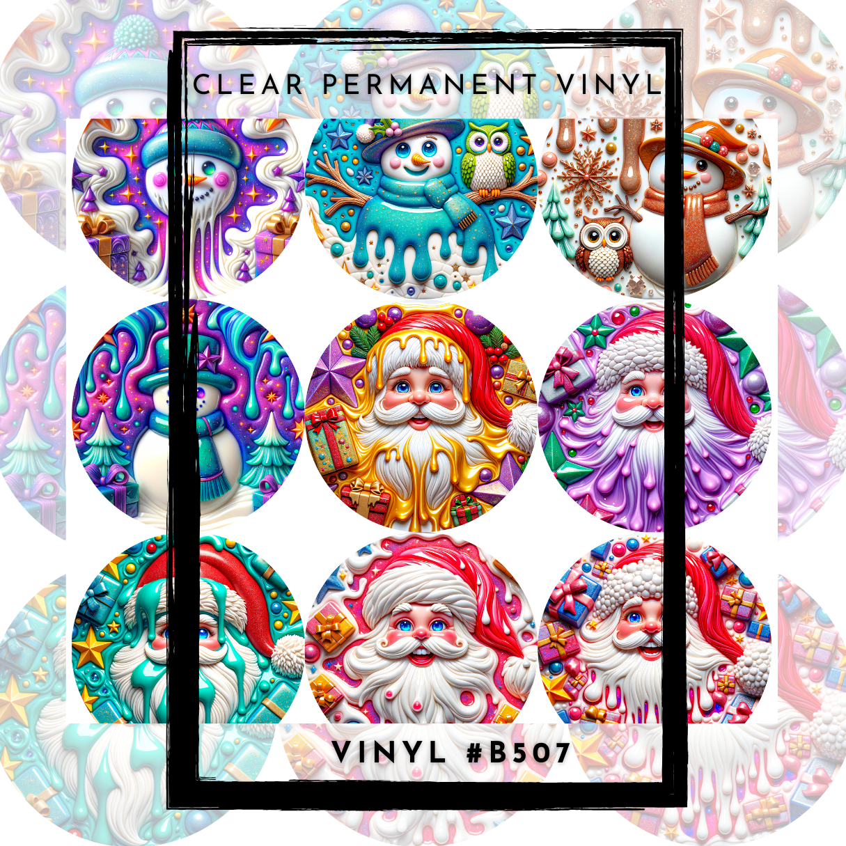 #B507-CLEAR Small Scale Ornament Grid Helper-Drippy Santa Snowman- 12x12 CLEAR Pattern Vinyl