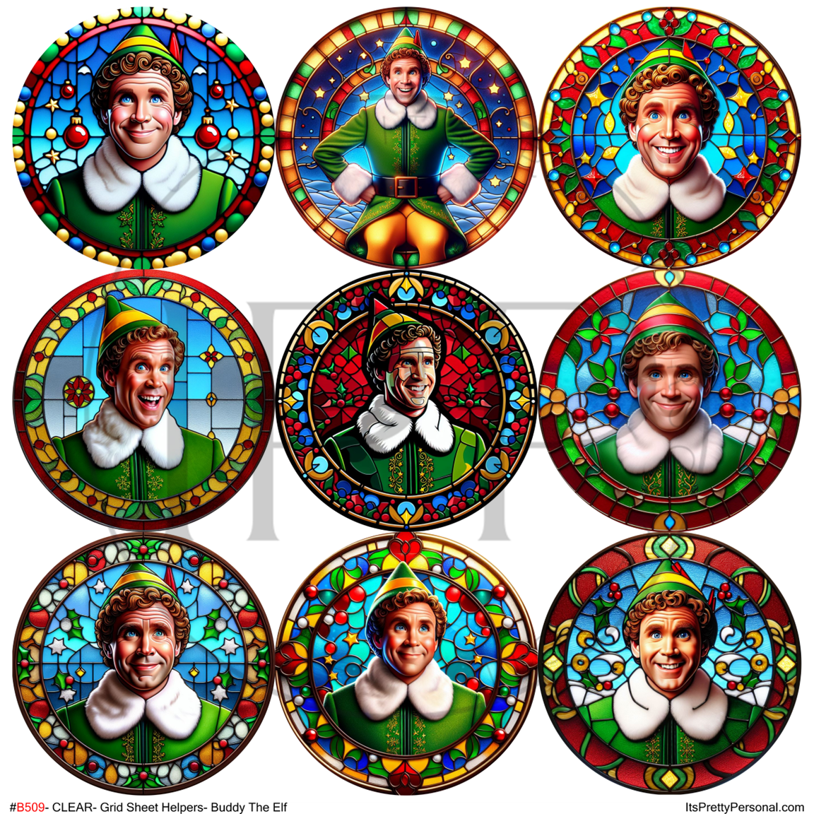 #B509-CLEAR Small Scale Ornament Grid Helper-Buddy The Elf- 12x12 CLEAR Pattern Vinyl