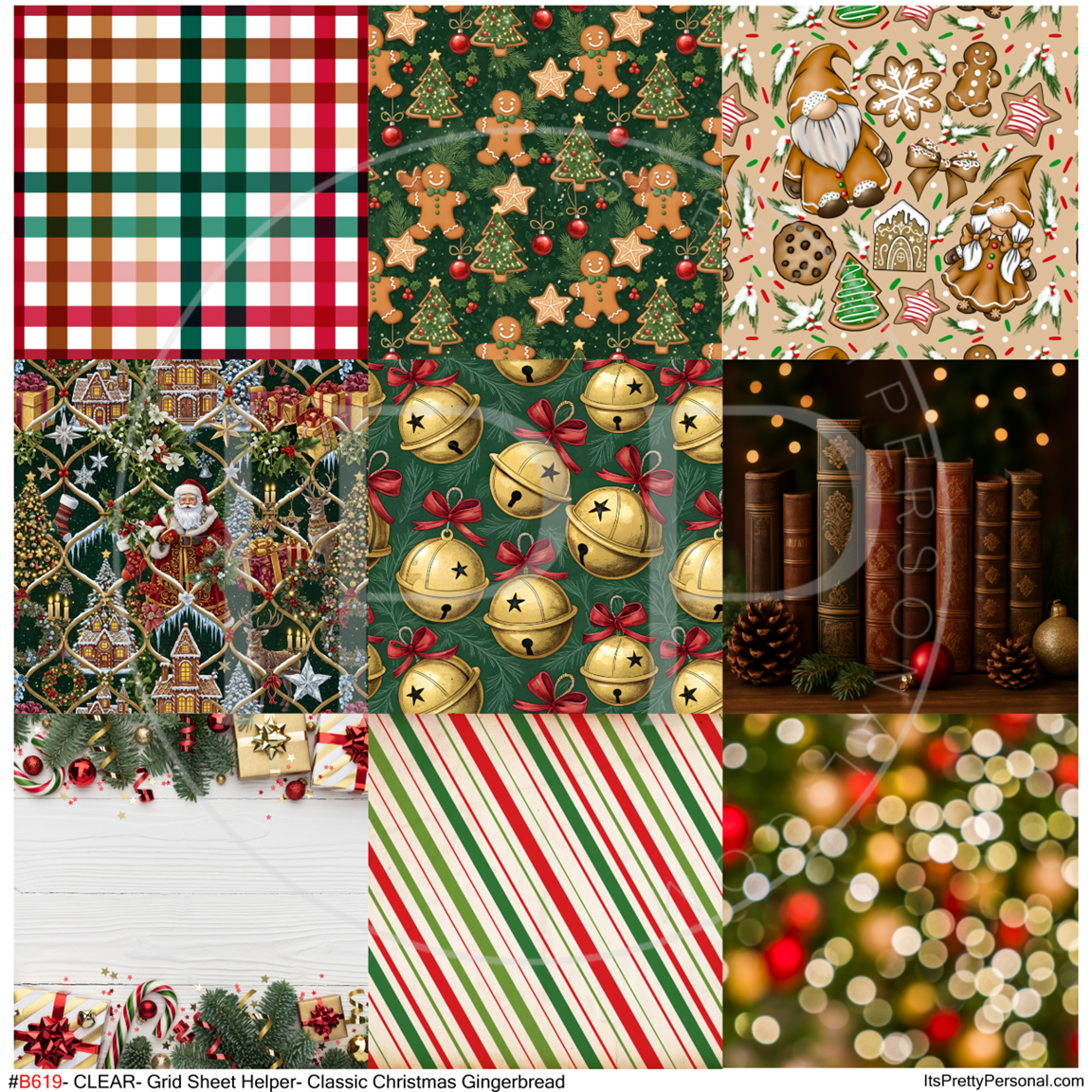 #B619-CLEAR Small Scale Ornament Grid Helper-Classic Christmas Gingerbread-12x12 CLEAR Pattern Vinyl