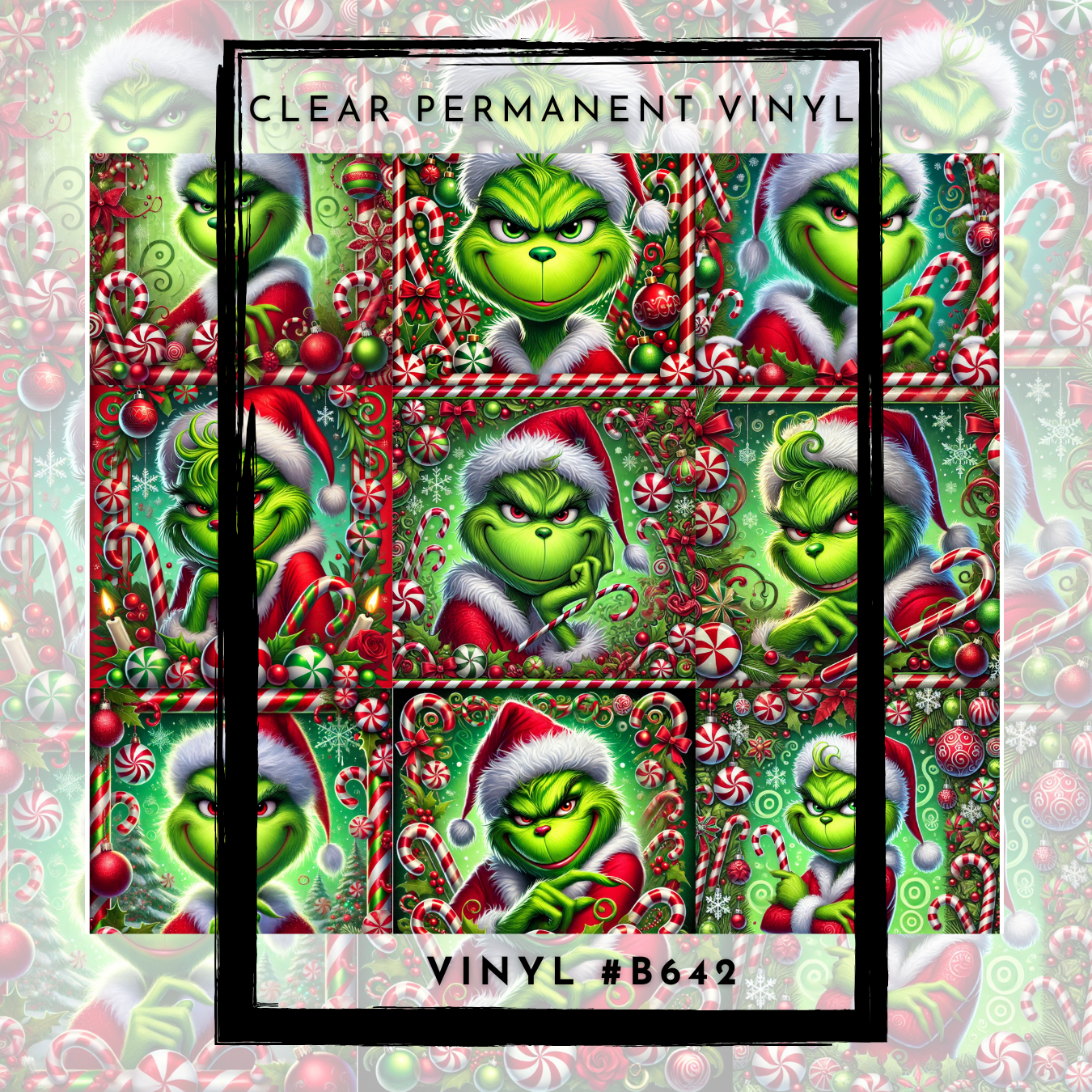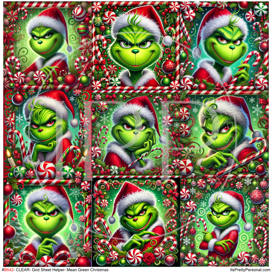#B642-CLEAR Small Scale Ornament Grid Helper-Mean Green Christmas Face-12x12 CLEAR Pattern Vinyl