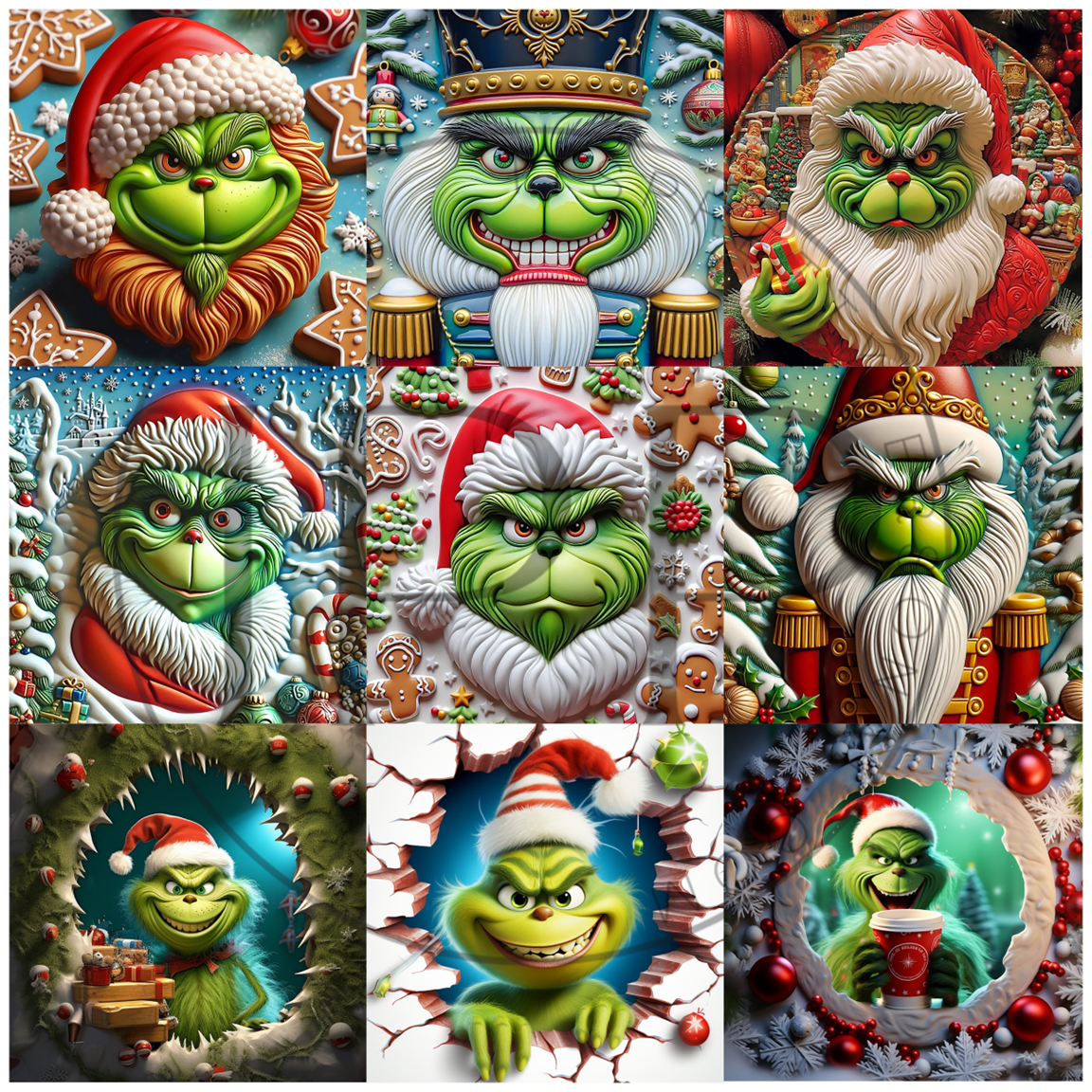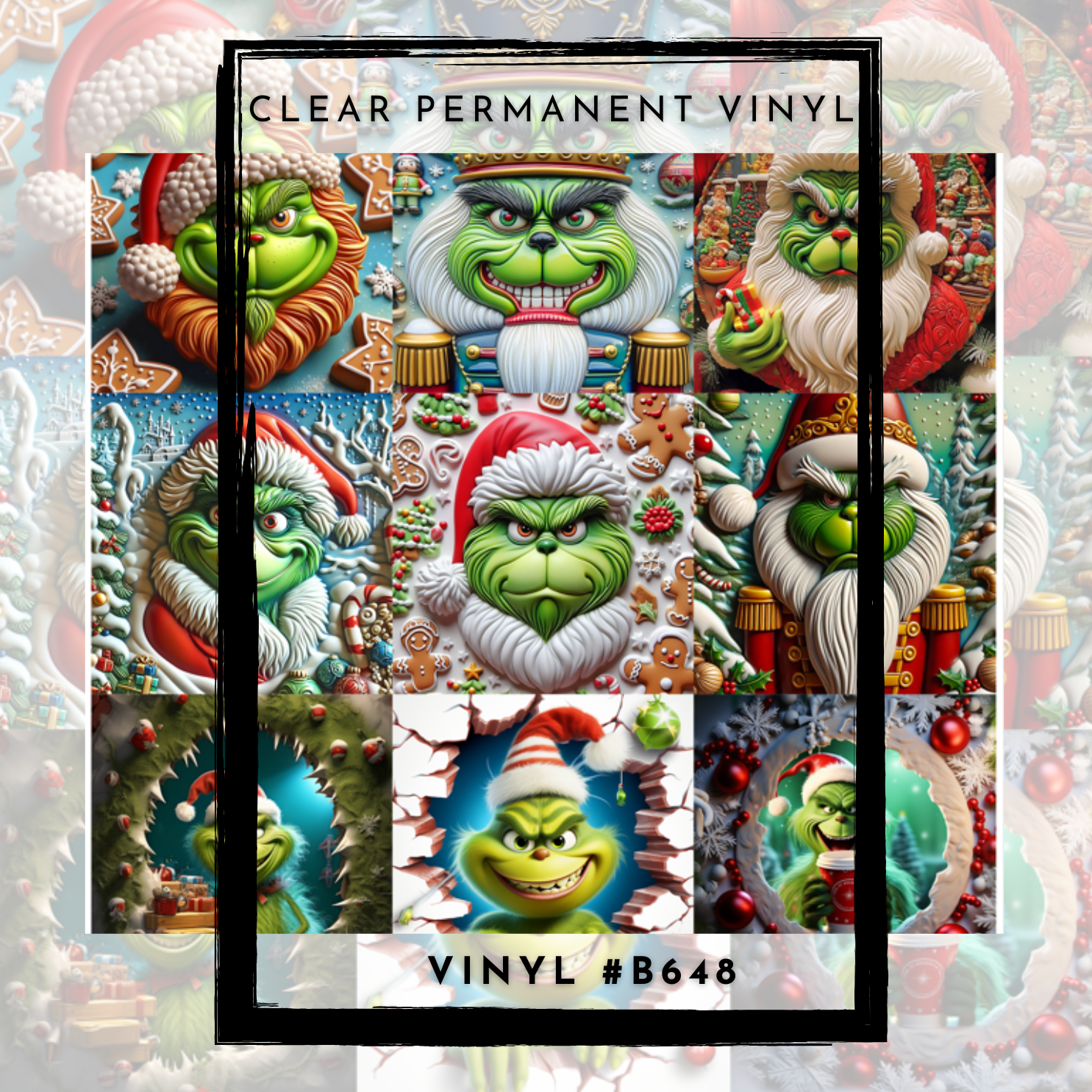 #B648-CLEAR Small Scale Ornament Grid Helper-Mean Green Santa-12x12 CLEAR Pattern Vinyl