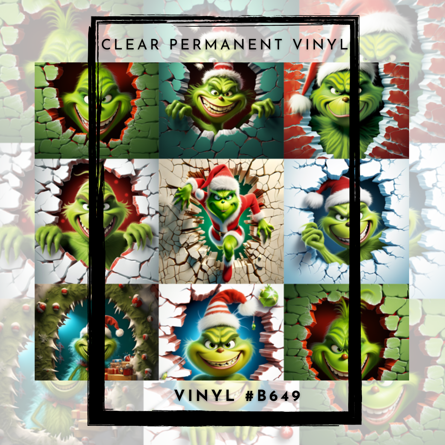 #B649-CLEAR Small Scale Ornament Grid Helper-Mean Green Santa-12x12 CLEAR Pattern Vinyl