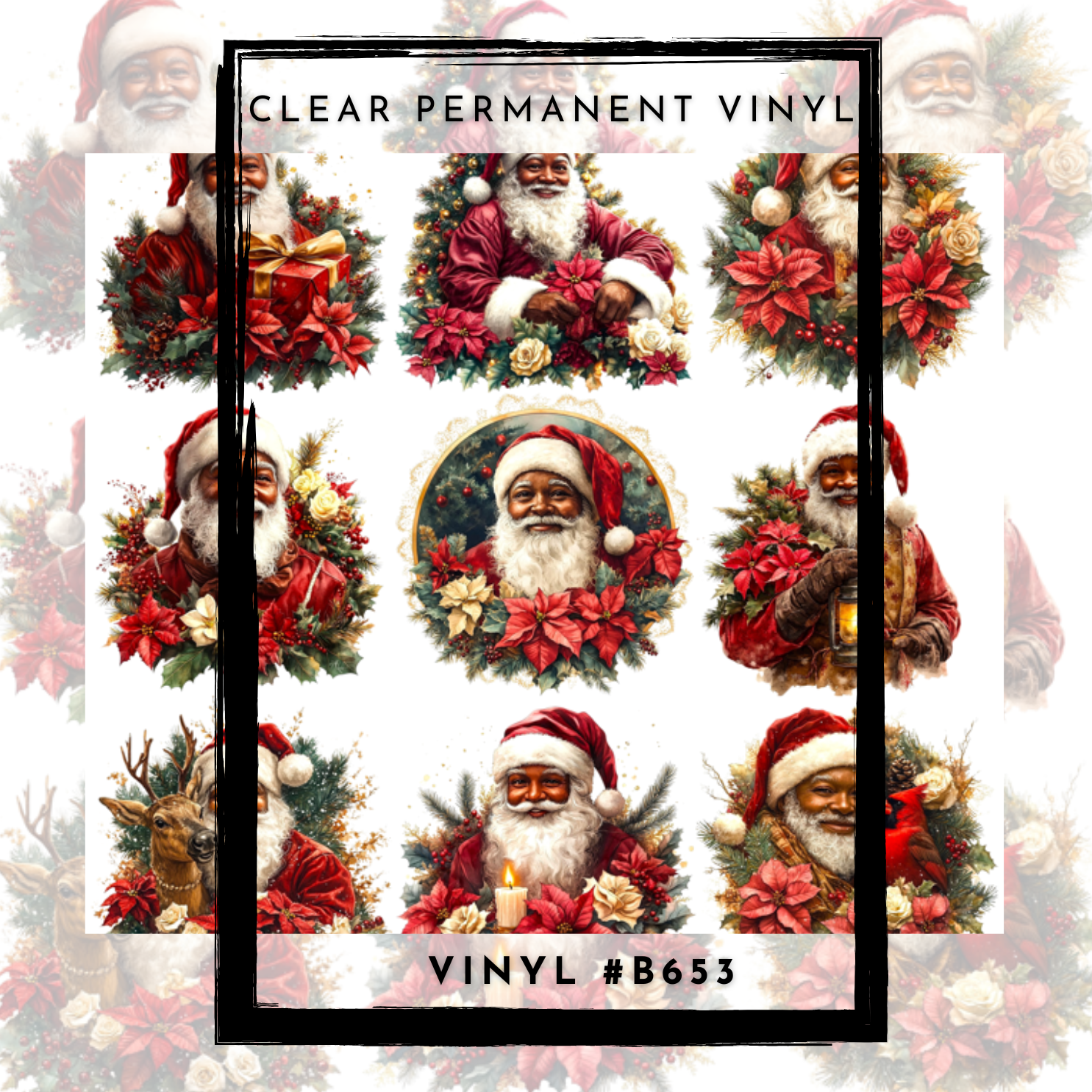 #B653-CLEAR Small Scale Ornament Grid Helper-Classic Santa-12x12 CLEAR Pattern Vinyl