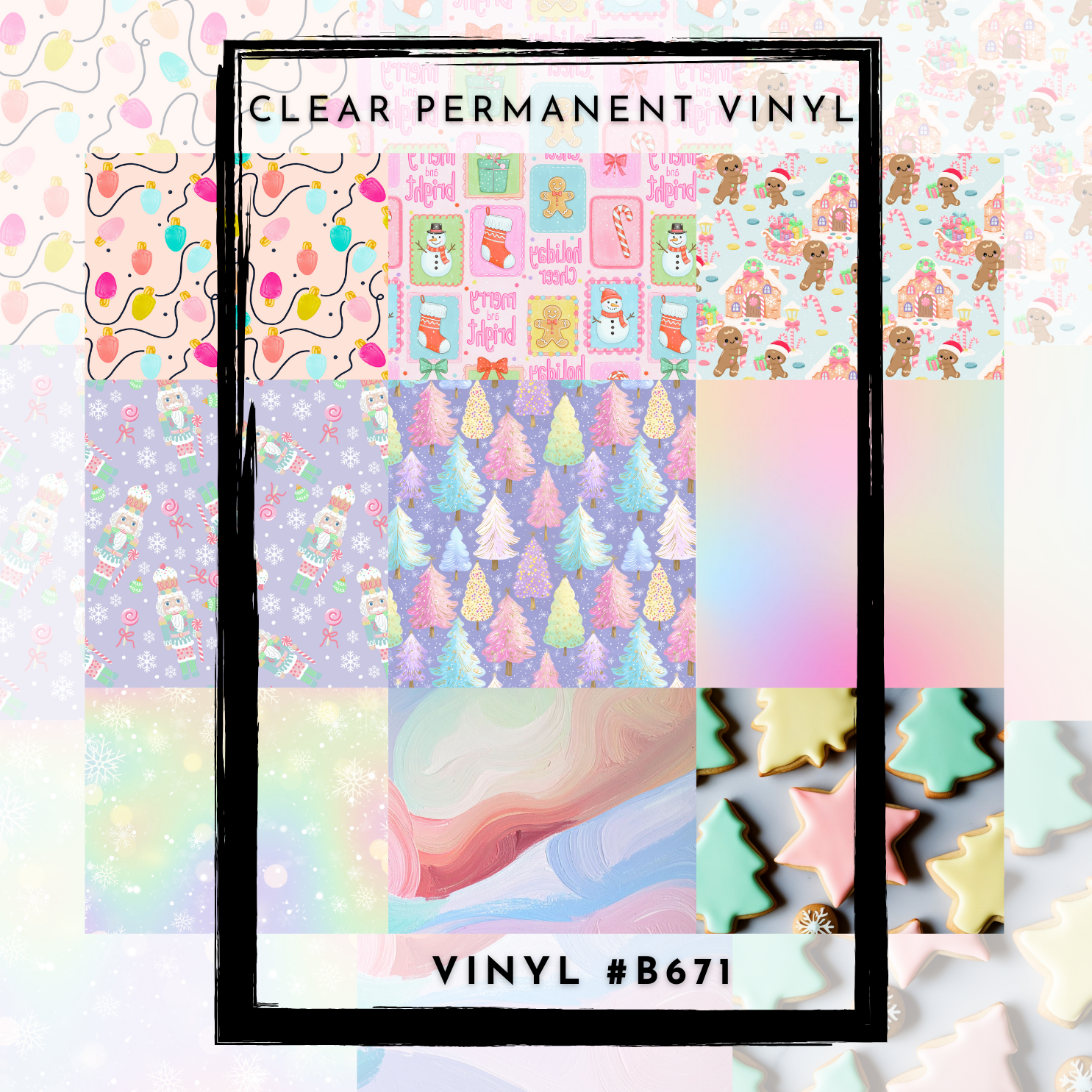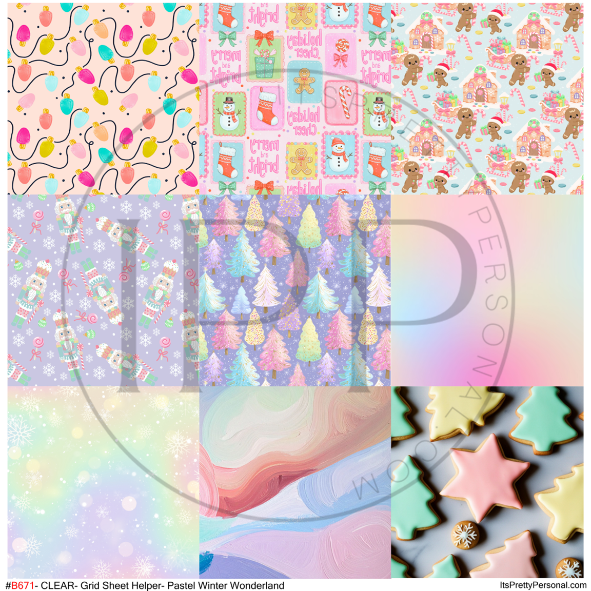 #B671-CLEAR Small Scale Ornament Grid Helper-Pastel Winter Wonderland-12x12 CLEAR Pattern Vinyl