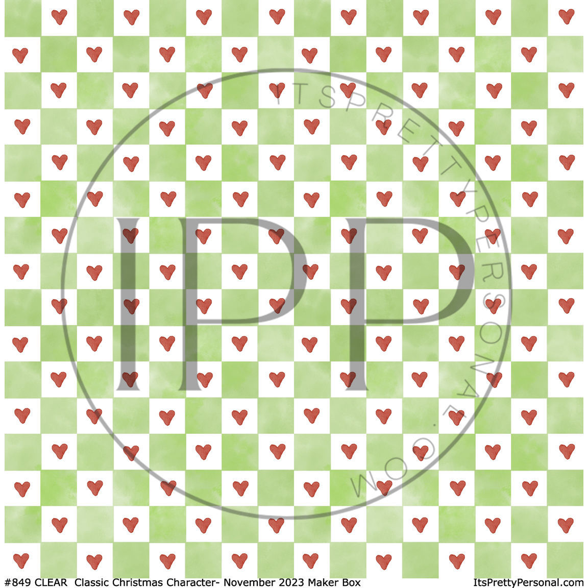 #849 CLEAR -Green Christmas Red Hearts - November Maker 2023 12x12 Pattern Vinyl