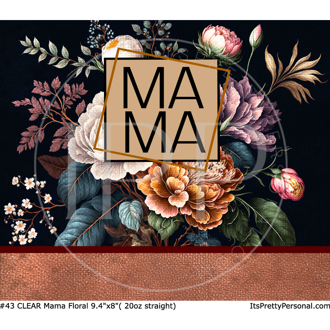 #43 CLEAR- 20oz - Mama Floral 9.4" x 8" Pattern Vinyl Wrap