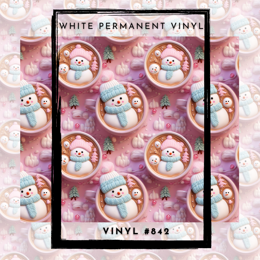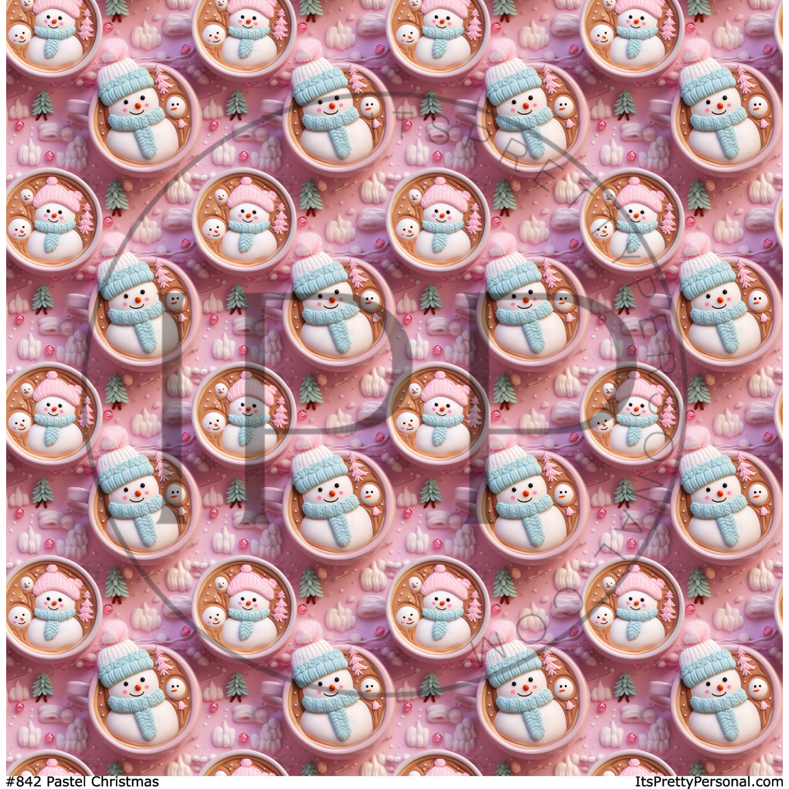 #842- Pastel Winter Christmas Snowman- 12x12 Pattern Vinyl