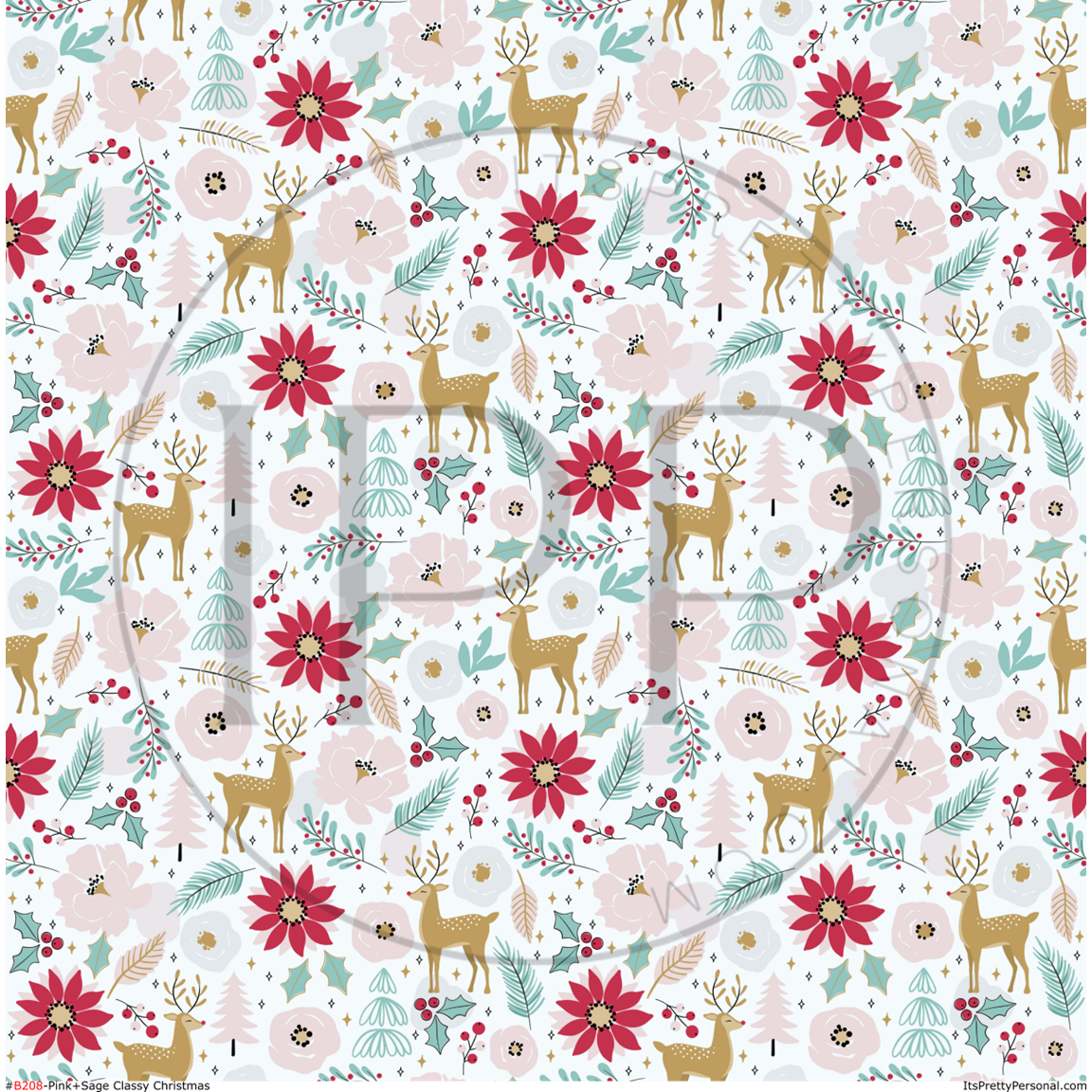 #B208-Classy Deer Pink Sage Green Christmas- 12x12 Pattern Vinyl