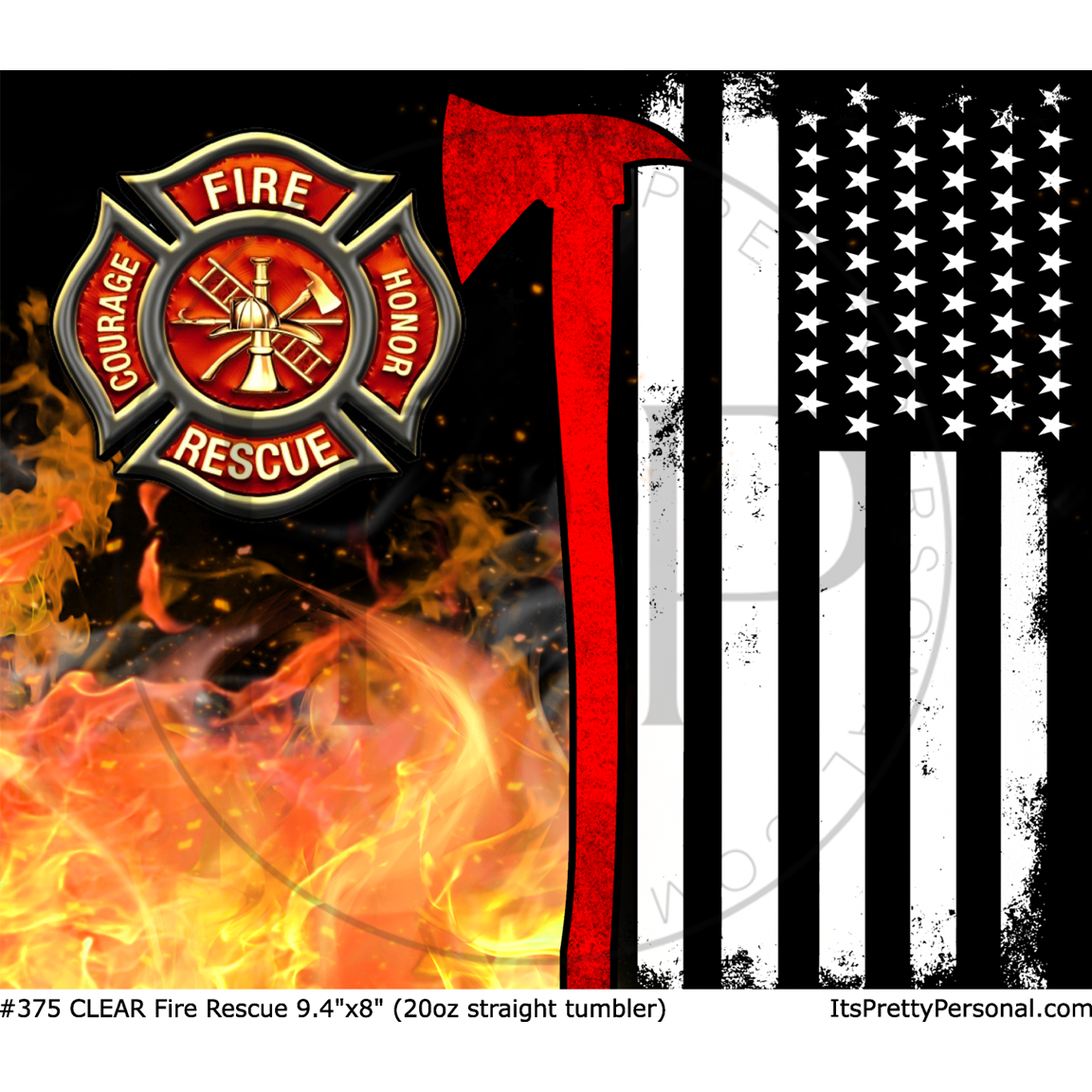 #375 CLEAR- 20oz - Fire Rescue 9.4" x 8" Pattern Vinyl Wrap
