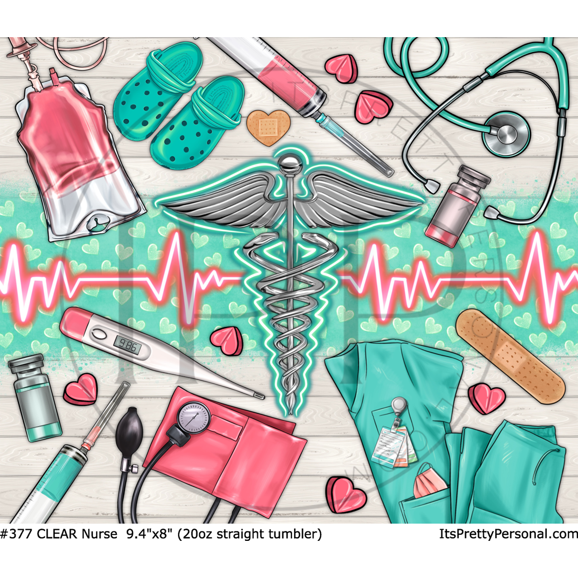 #377 CLEAR- 20oz - Nurse 9.4" x 8" Pattern Vinyl Wrap