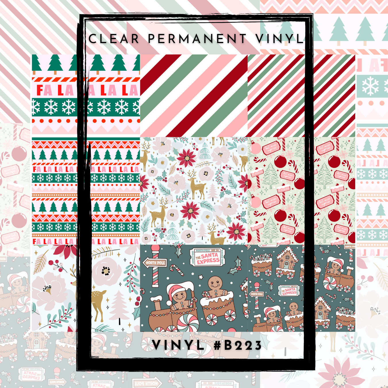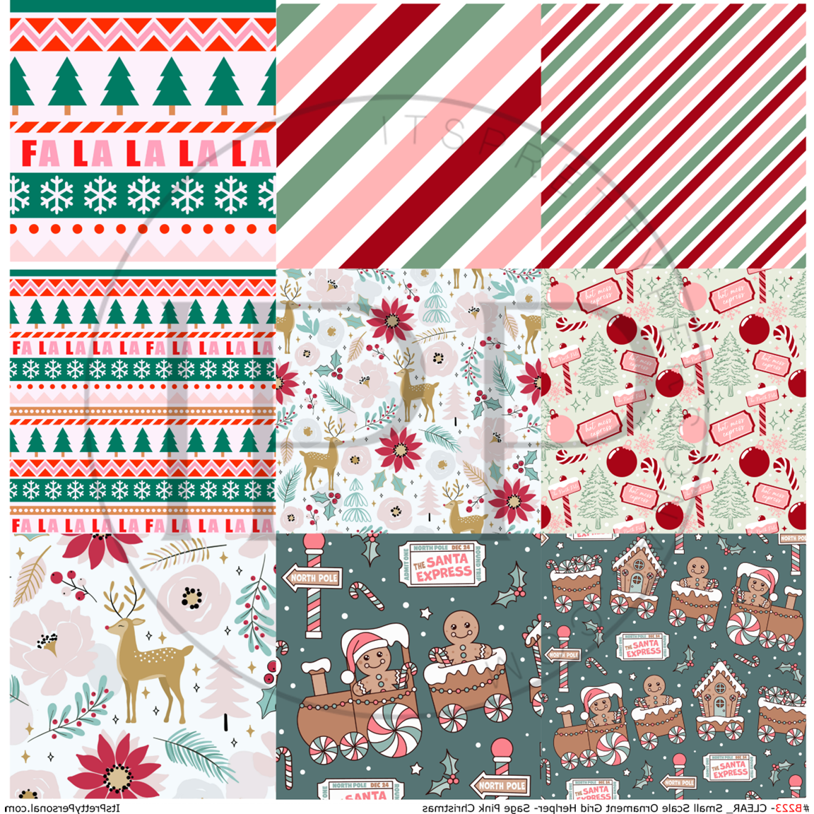 #B223- CLEAR Small Scale Ornament Grid Helper-Pink + Sage Winter Christmas -12x12 CLEAR Pattern Vinyl