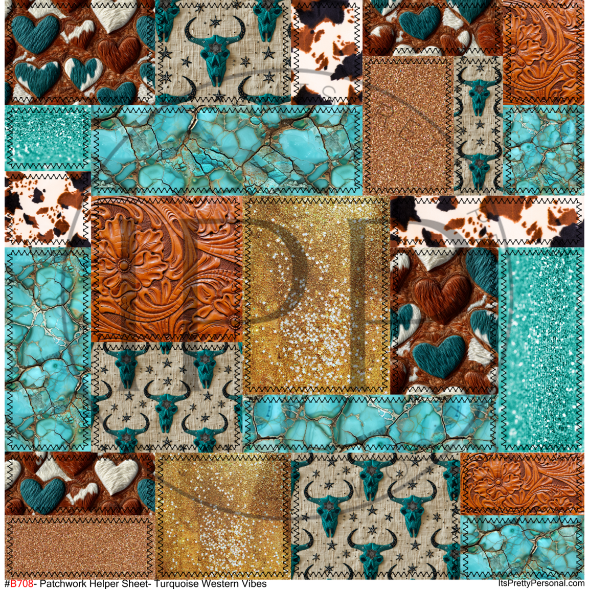 #B708- Patchwork Helper Sheet- Turquoise Western Vibes -12x12 Pattern Vinyl