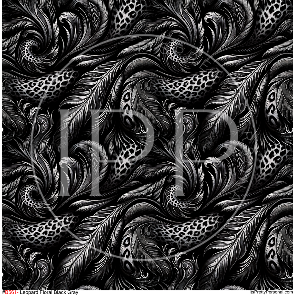 #B561- Leopard Floral Black Gray- 12x12 Pattern Vinyl