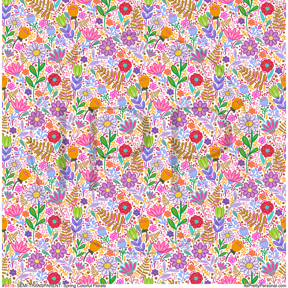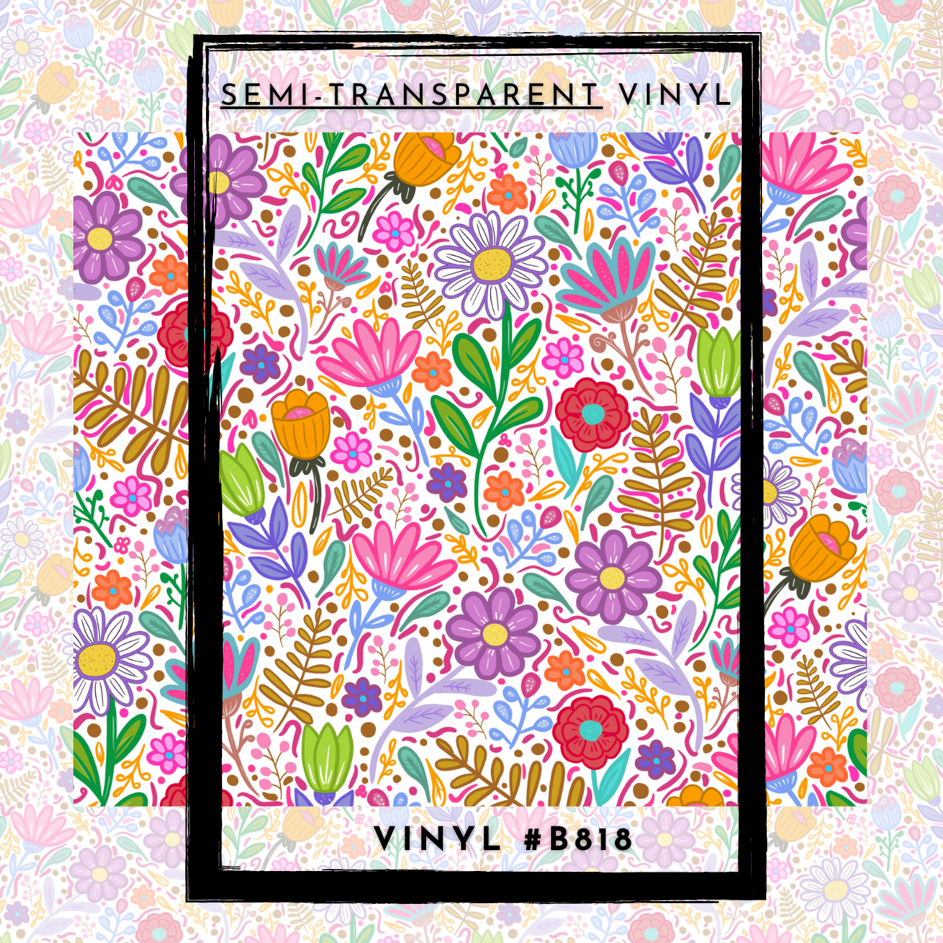 #B818- SEMI-TRANSPARENT- Spring Colorful Doodle Florals -12x12 Pattern Vinyl