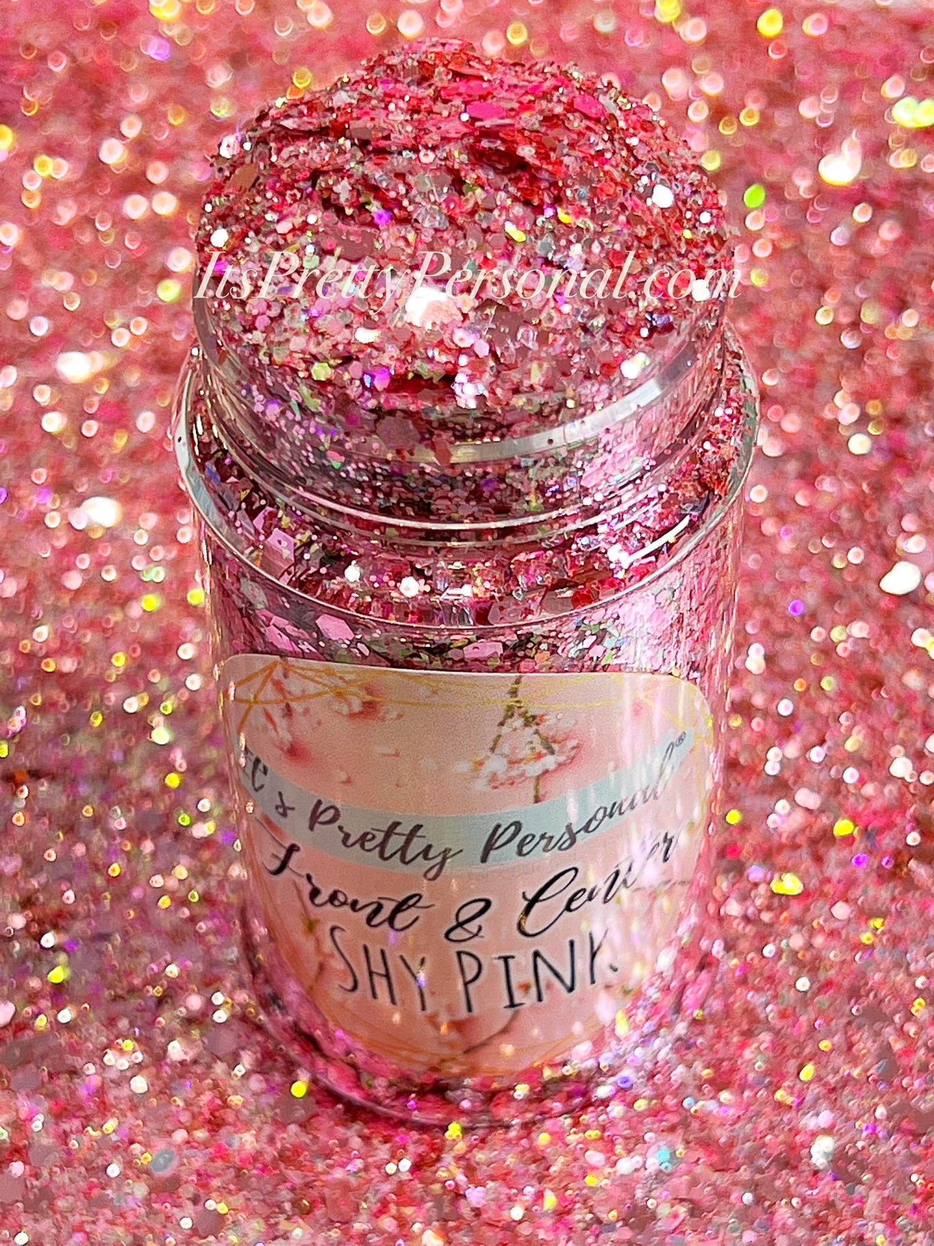 Custom it’s Pretty Personal Blend- Shake well before using! Different glitter in the mix may stick to the side of the bottle. Open bottle to see true color.