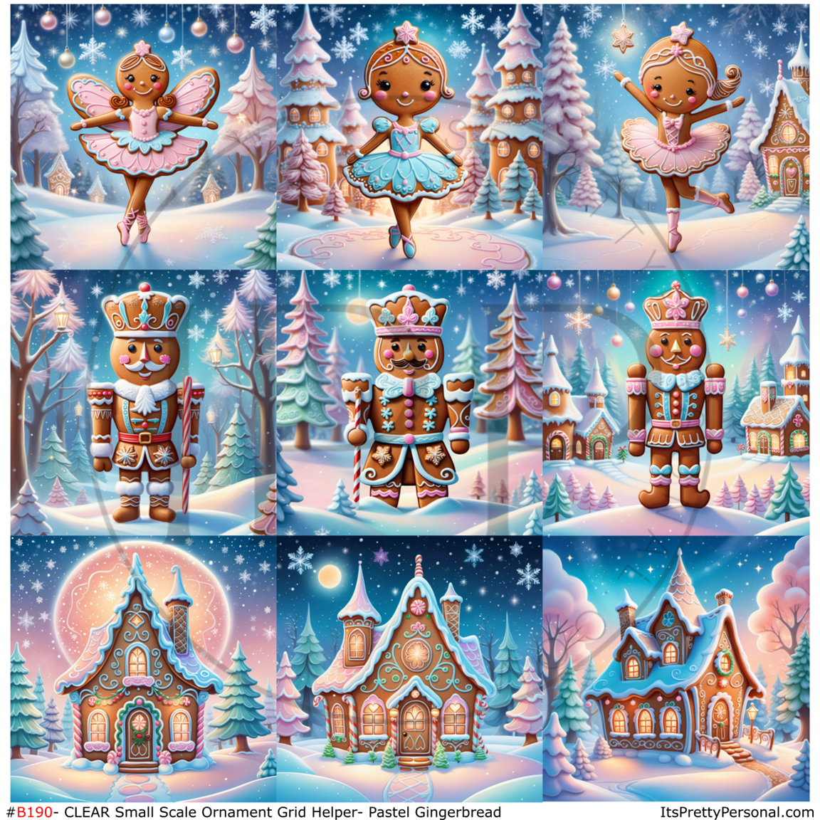 #B190- CLEAR Small Scale Ornament Grid Helper-Pastel Gingerbread Nutcracker -12x12 CLEAR Pattern Vinyl