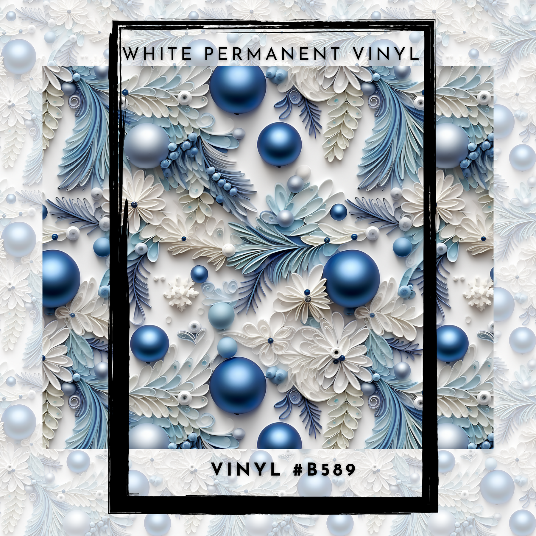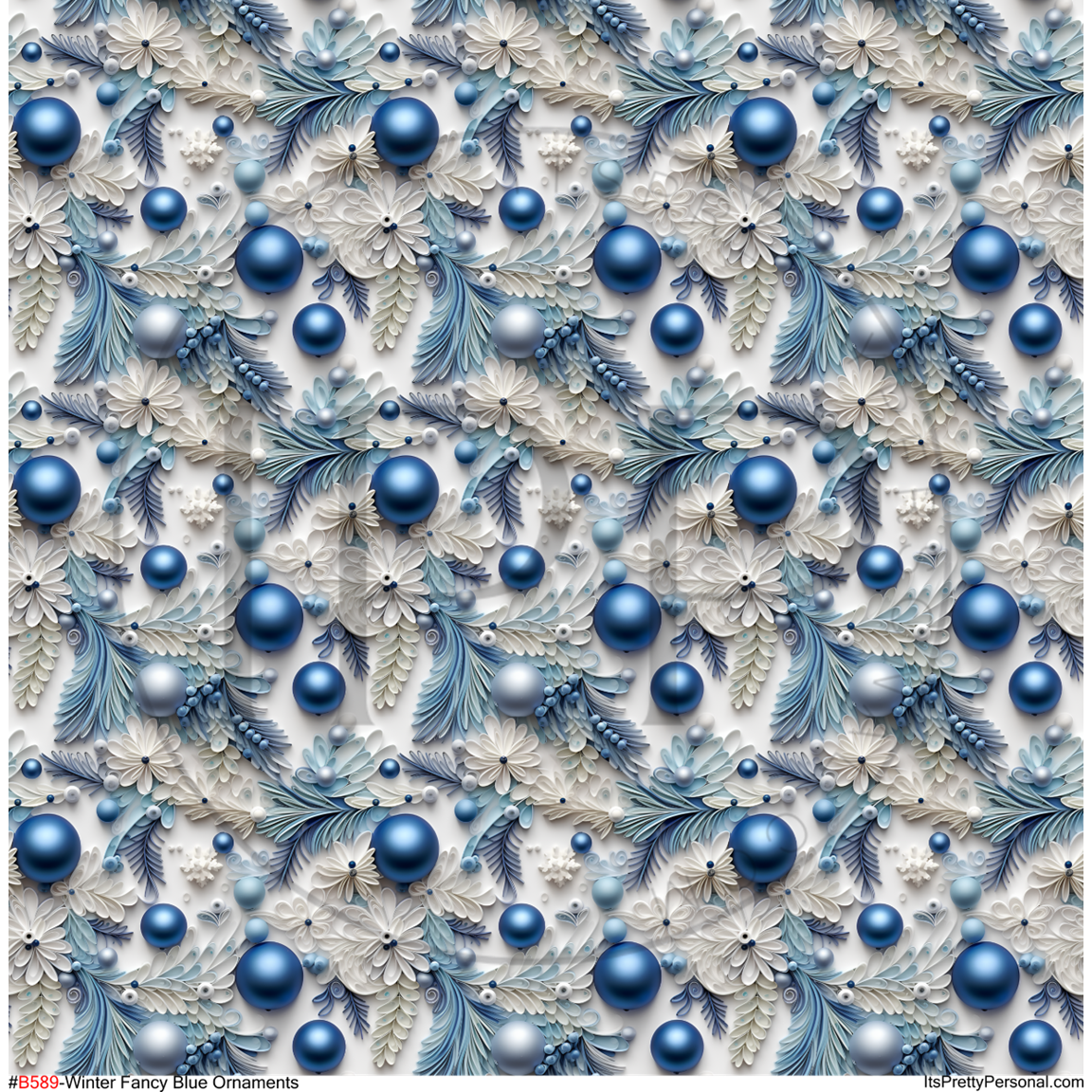 #B589- Winter Fancy Blue Ornaments- 12x12 Pattern Vinyl