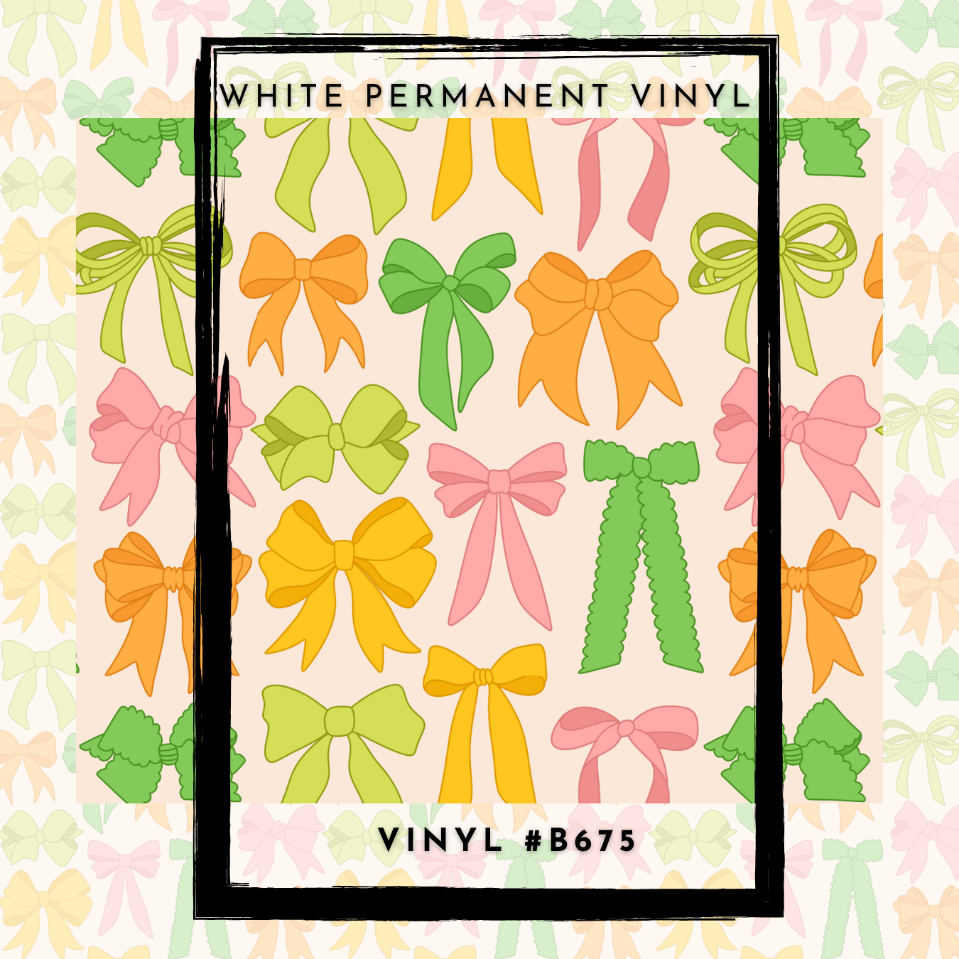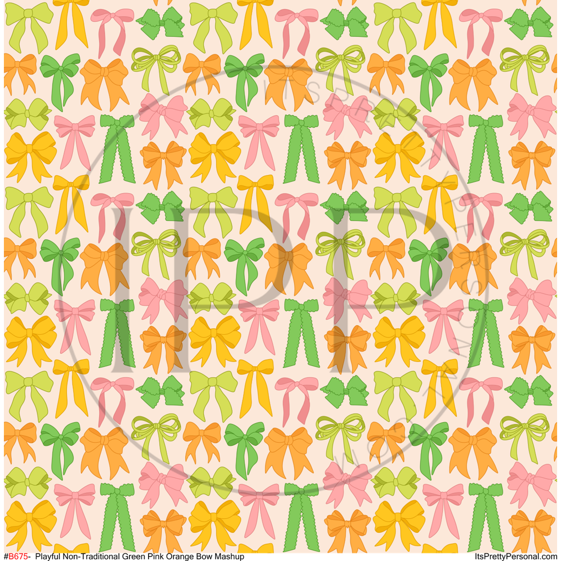 #B675- Playful Doodle Non-Traditional Green Pink Orange Bows- 12x12 Pattern Vinyl