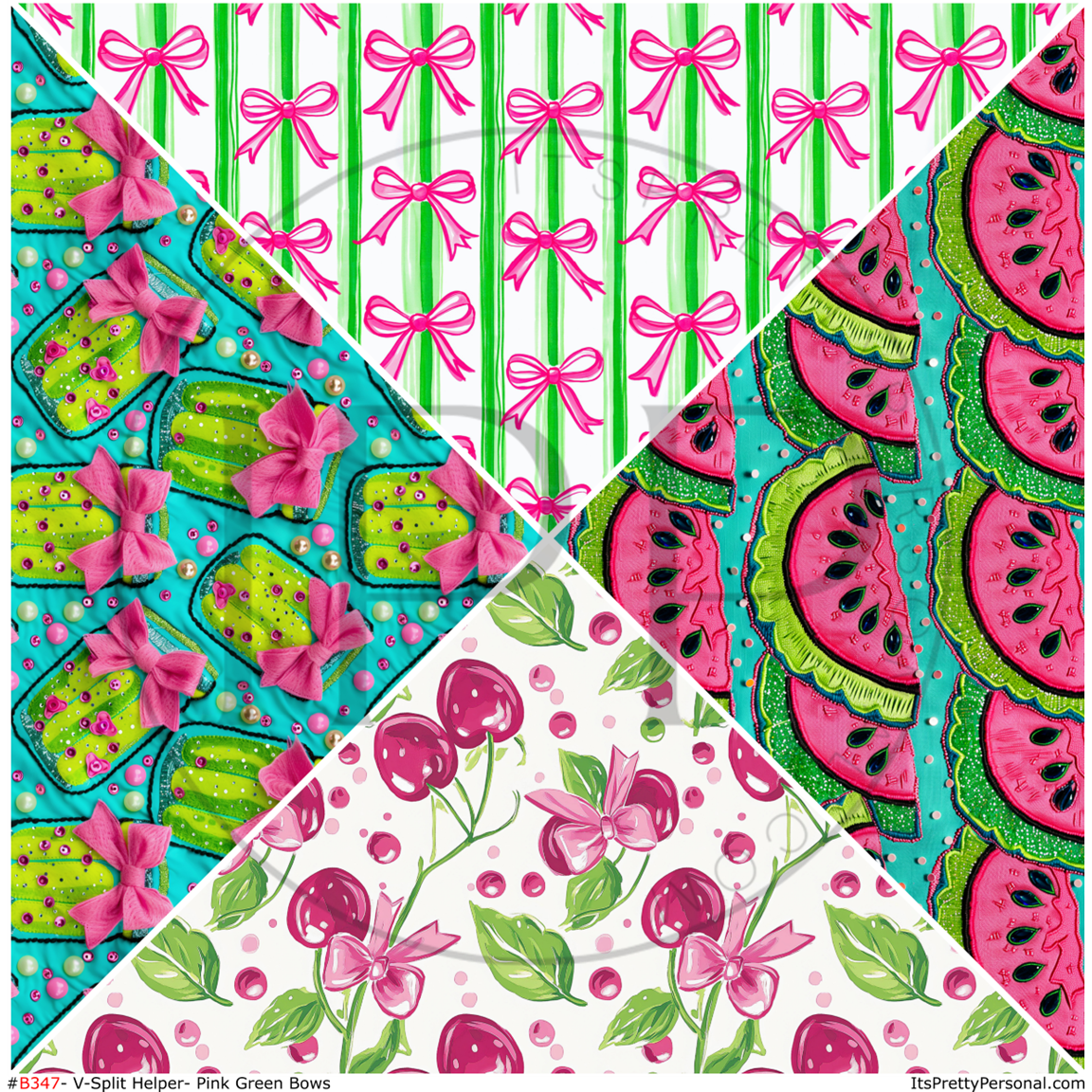 #B347-V-Split Helper-Pink + Green Watermelon Cherries Pickles Bows- 12x12 Pattern Vinyl