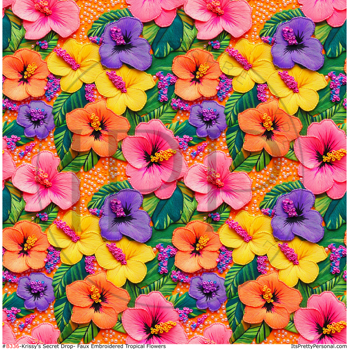 #B336-Faux Embroidered Tropical Flowers- Krissy's Secret Drop- 12x12 Pattern Vinyl