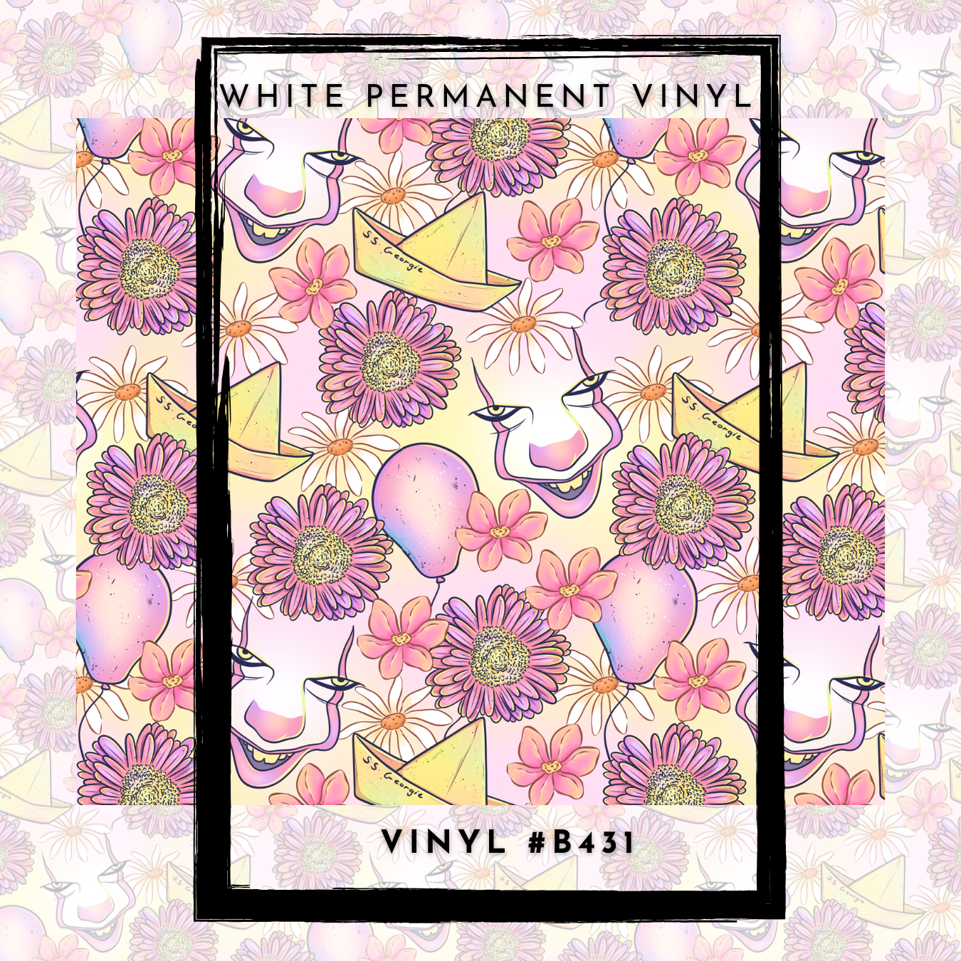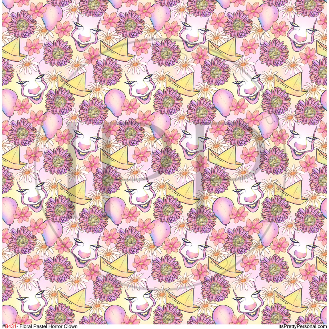 #B431- Pastel Floral Horror IT Clown- 12x12 Pattern Vinyl