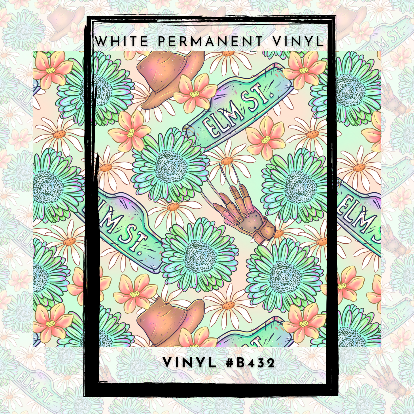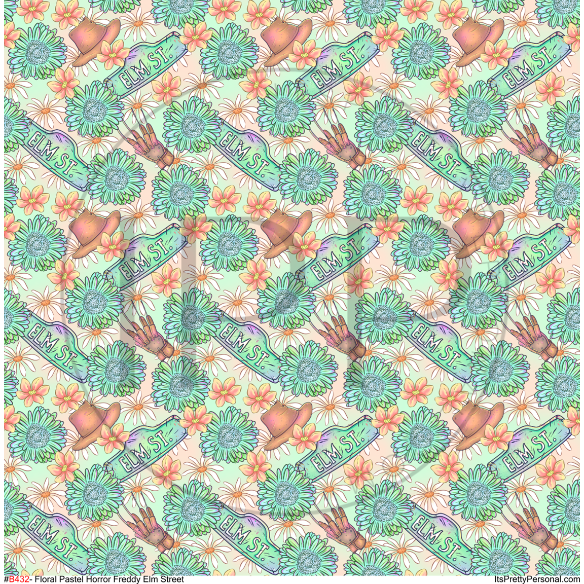 #B432- Pastel Floral Horror Freddy Elm Street- 12x12 Pattern Vinyl