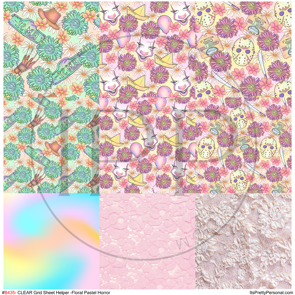 #B435-CLEAR Small Scale Ornament Grid Helper-Pastel Horror- 12x12 CLEAR Pattern Vinyl