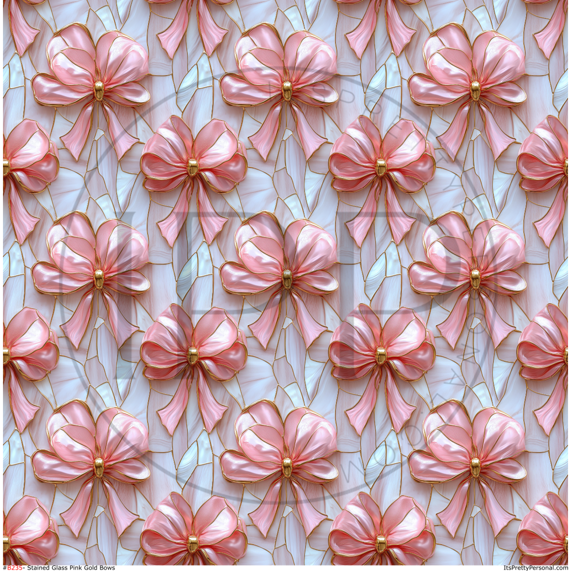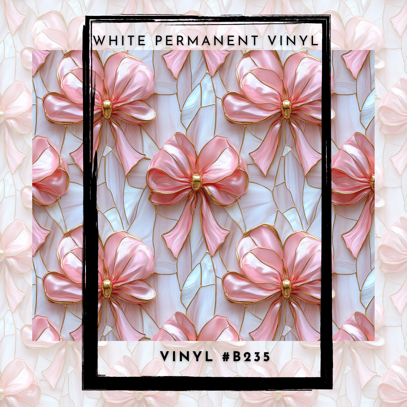 #B235- Stained Glass Pink Gold Bows -12x12 Pattern Vinyl